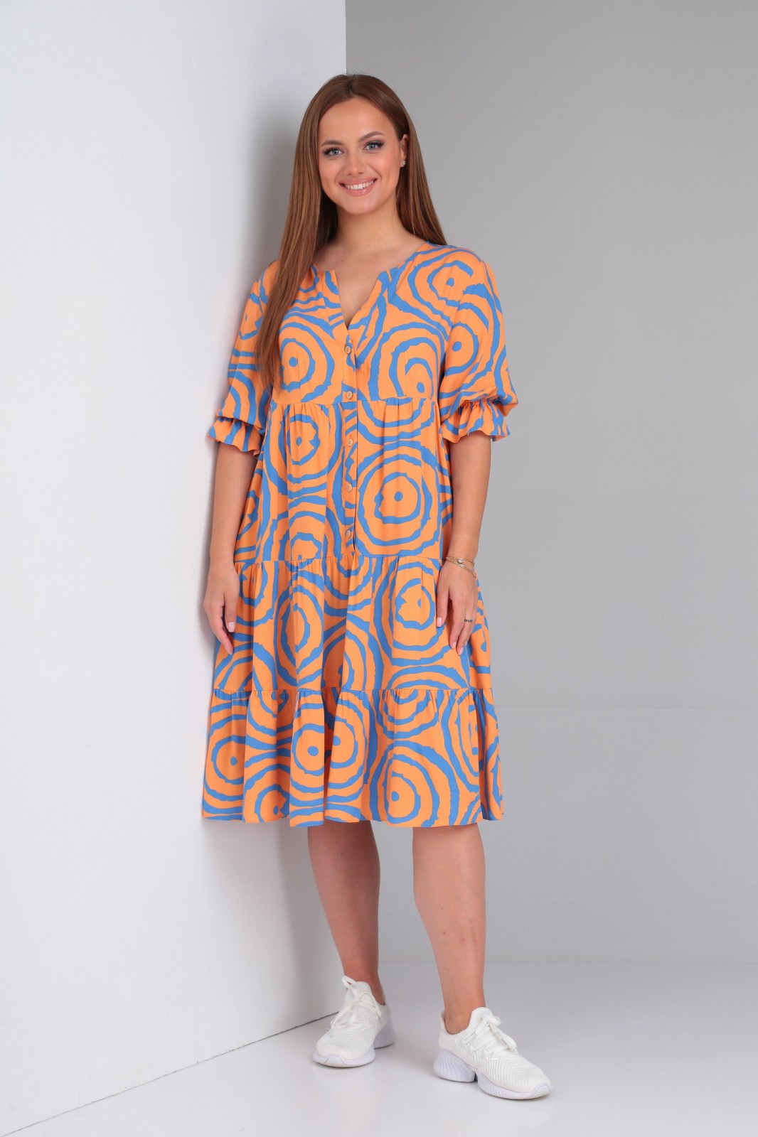 Платье 7632 оранж+синий / вискоза