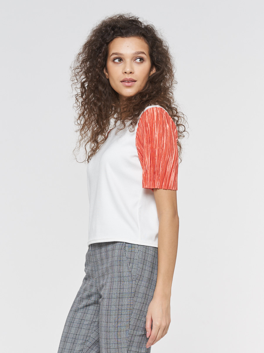 42 Д12/П04 молоко/охра ; 42 Д12/П03 молоко/живой коралл ; 44 Д12/П04 молоко/охра ; 46 Д12/П04 молоко/охра ; 48 Д12/П04 молоко/охра Материал 1 Вискоза-55%,Полиэстер-40%,Спандекс-5%,СОРТ I; Материал 2 Полиэстер-100%,СОРТ