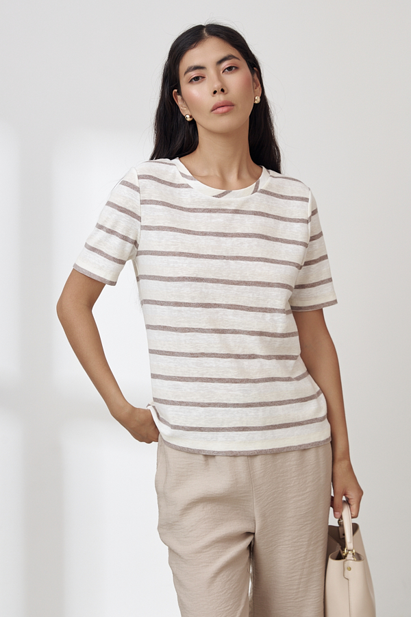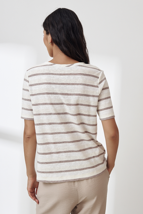 Джемпер из эластичного полотна полуприлегающего силуэта. Втачной короткий рукав. Вырез горловины окантован эластичной бейкой. Джемпер – это хорошая базовая вещь, подходящая для любого гардероба.