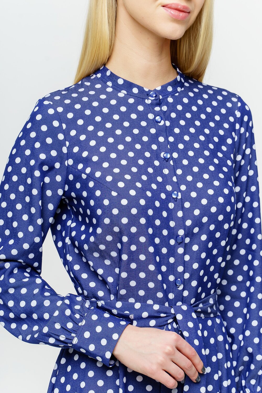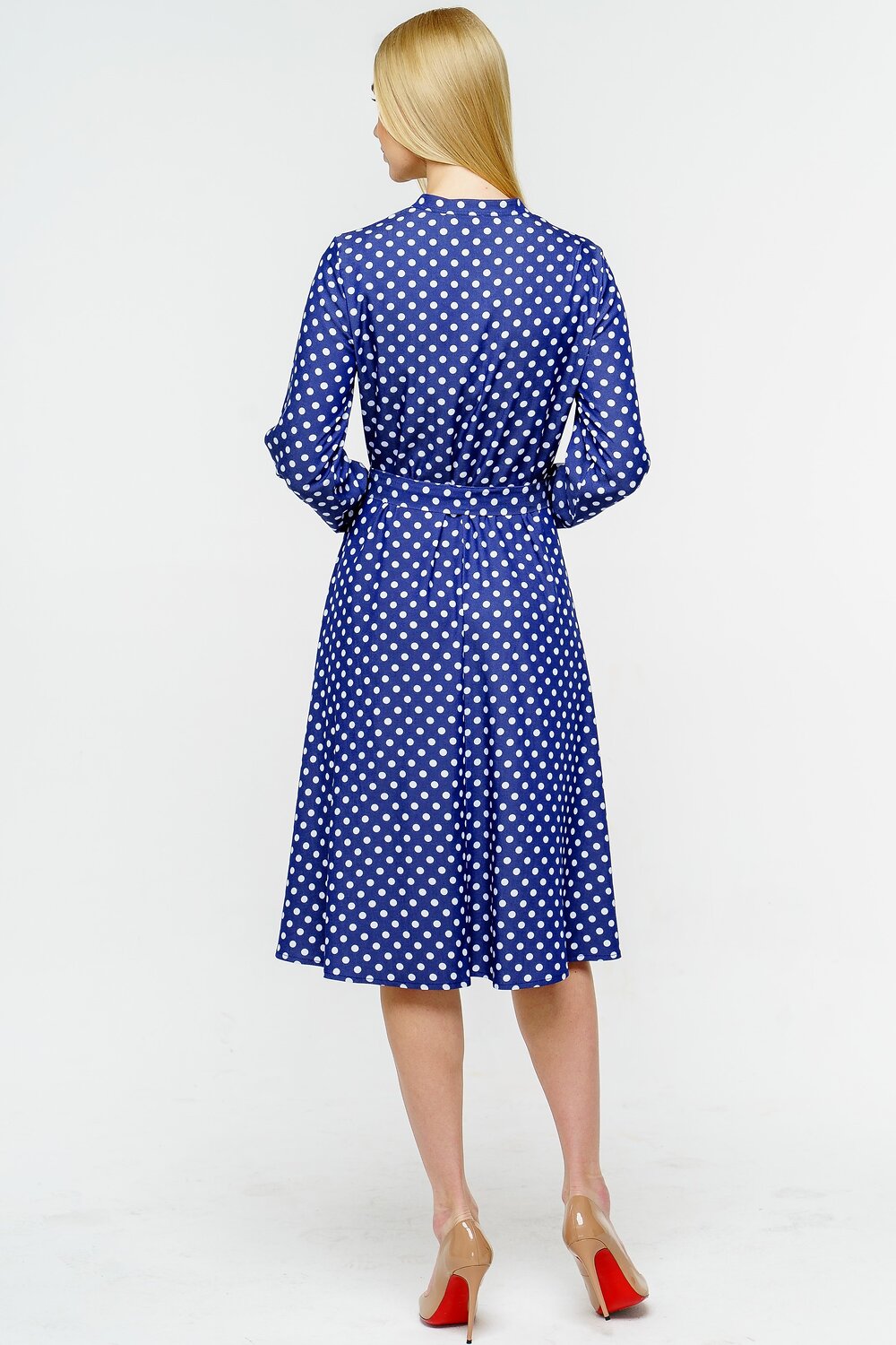 Женское платье с поясом, свободного силуэта. Длина ниже колена.