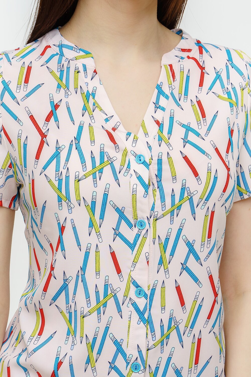 Женская блуза полуприлегающего силуэта, с коротким рукавом.