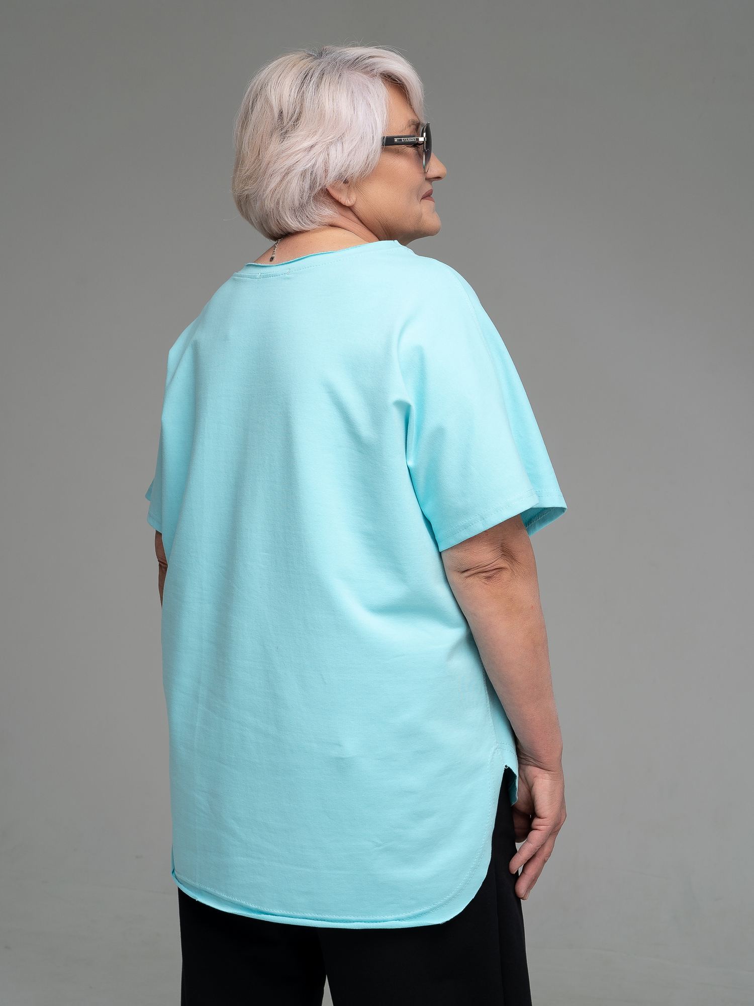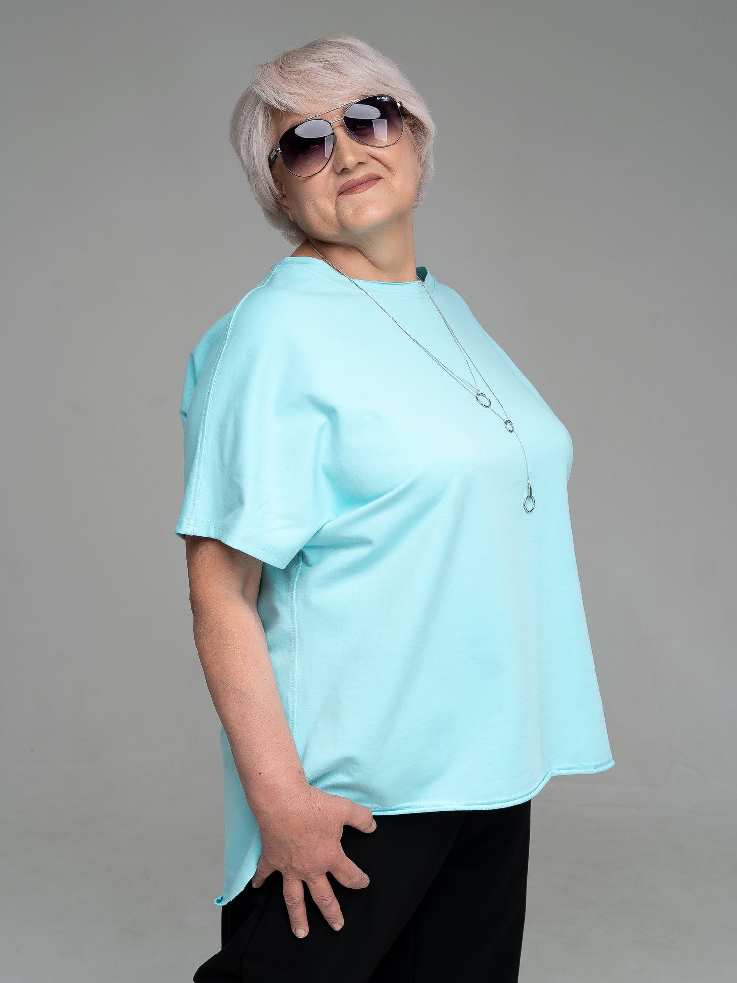Женский джемпер из футера ментолового цвета свободного силуэта с удлиненной линией плеча, без рукавов. Выполнен из трикотажа премиум качества футера 2-х нитки. Высокое содержание хлопка в составе 92% позволит почувствовать максимальный комфорт и уверенность в себе, а добавление эластана 8 % придаcт этому изделию дополнительную прочность и износостойкость.  Удлиненная оверсайз форма, приспущенная линия плеча, горловина лодочка – это удобство и стиль в любой ситуации. Трикотажный жилет сочетается с разными нарядами, подойдет как в офис, так и на учебу. Благодаря своей универсальности, данную модель можно носить как тунику, джемпер, футболку или блузку. Изделие выполнено из трикотажа премиального качества - ПЕНЬЕ, с содержанием хлопка более 92%