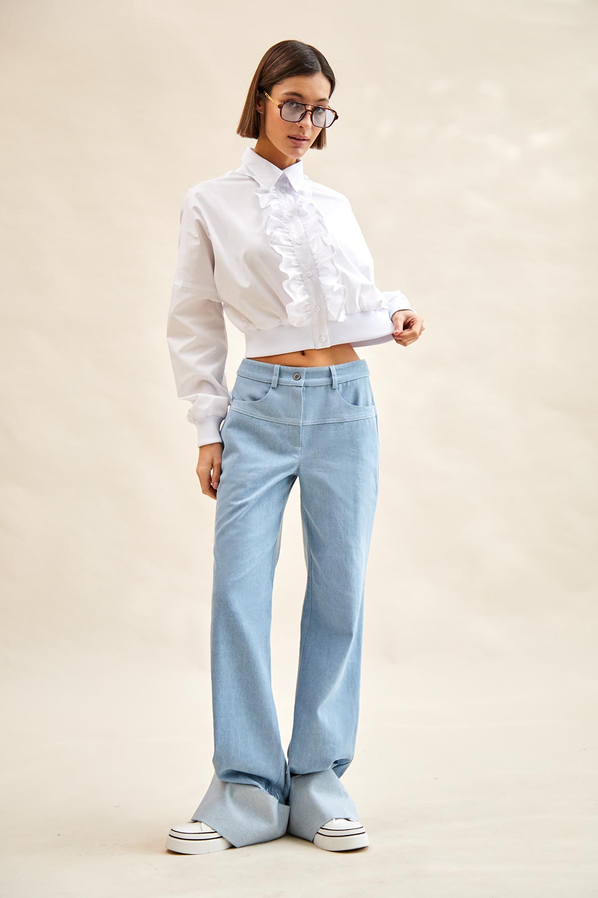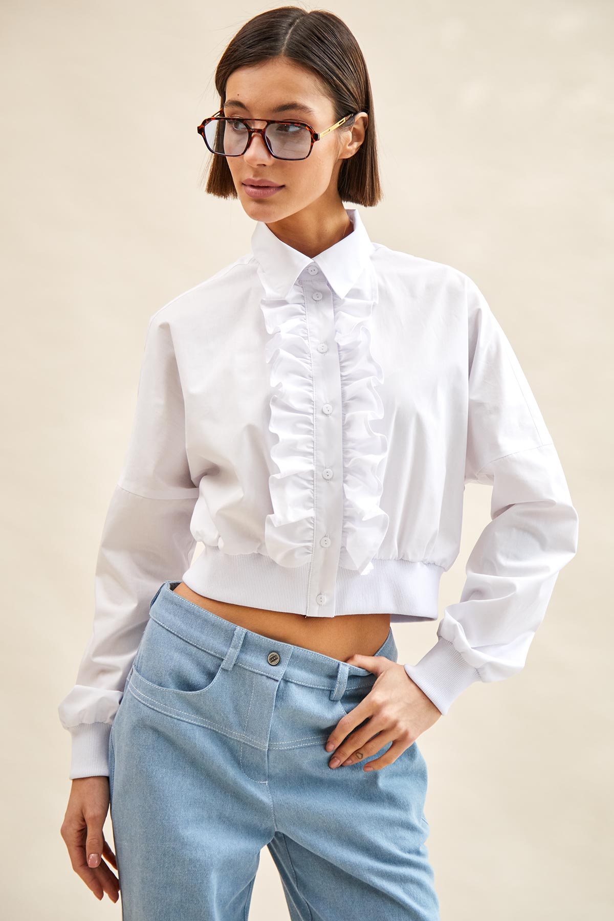 - застежка на планку с пуговицами и двумя оборками вдоль планки;