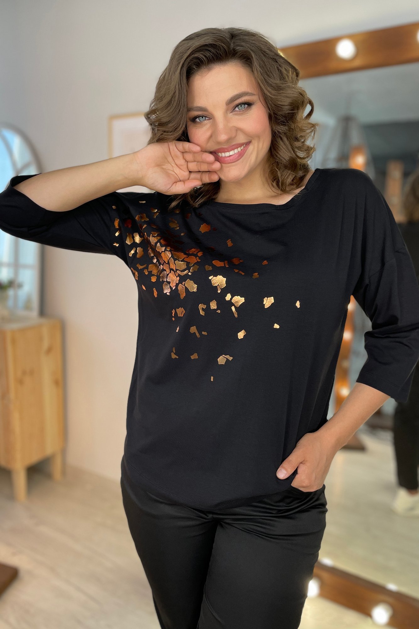 "Блузка женская, полуприлегающего силуэта из трикотажной ткани. По переду расположен принт.