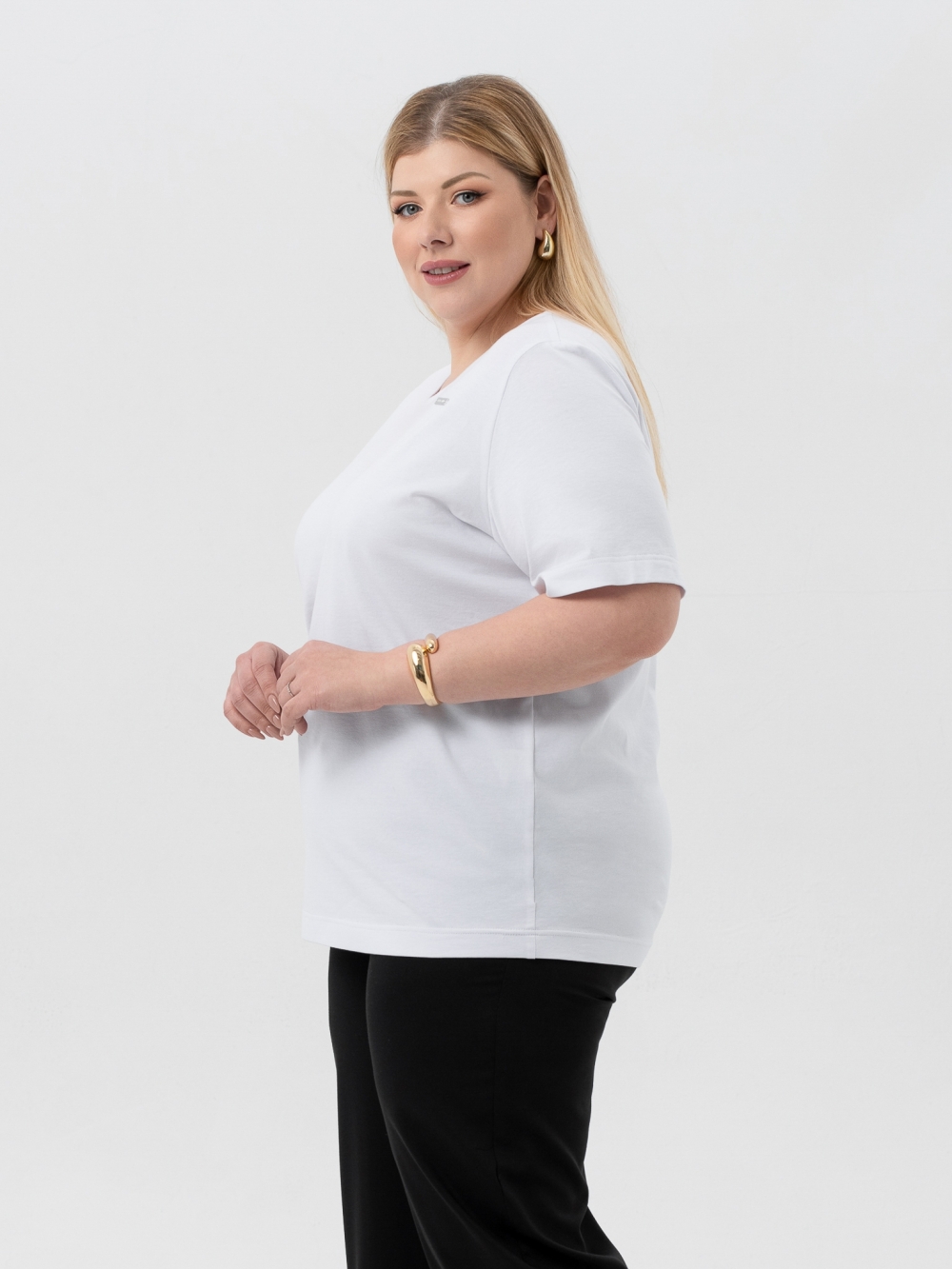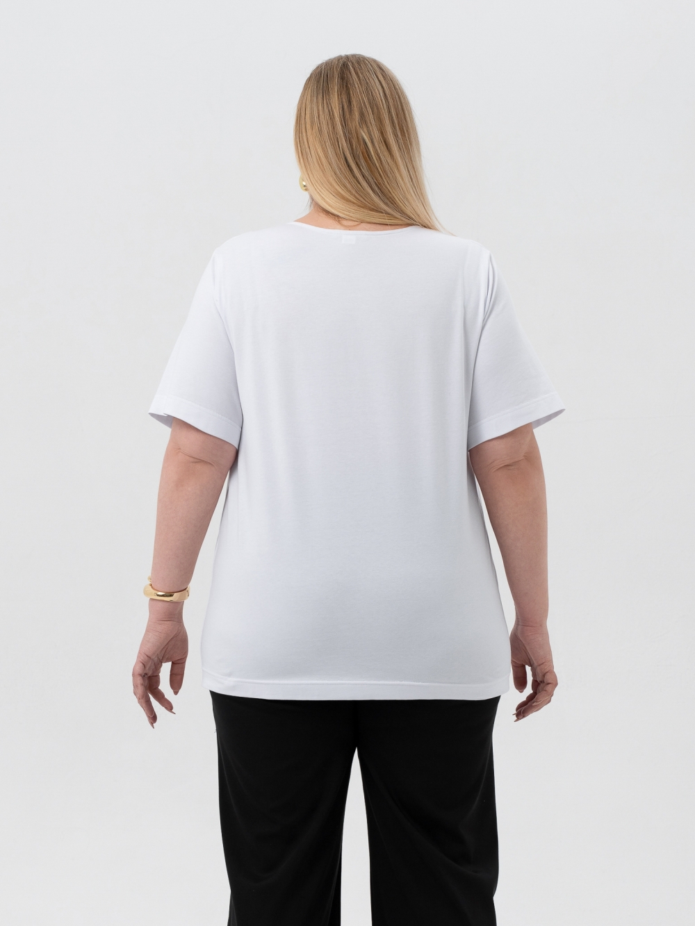 Современная футболка прямого силуэта выполнена из качественного, натурального трикотажного полотна. Модель с втачным рукавом длиной до локтя и круглой линией горловины. Футболка - самый демократичный вид одежды в мире, её носят люди всех возрастов, национальностей и достатка. Она входит в топ-5 самых актуальных вещей летнего гардероба. Базовая белая футболка лучше всех вписывается в расслабленную атмосферу долгожданного отпуска.