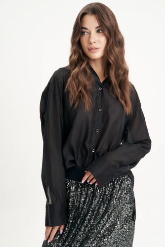 Невероятная блуза свободного силуэта, рубашечного покроя, рукав длиной 3/4, эффектная драпировка по переду и кокетливый пояс-завязка по спинке.