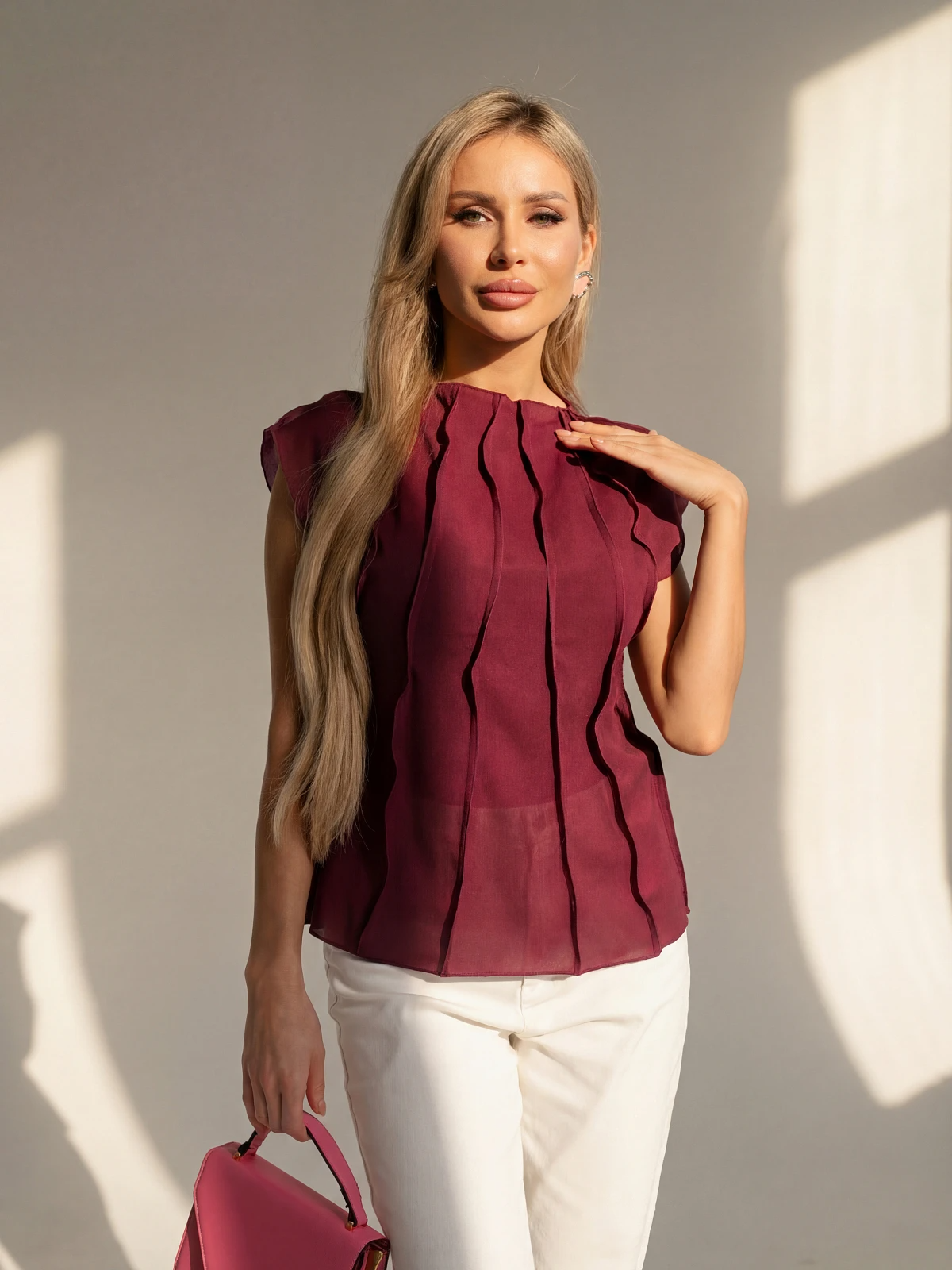 Блуза из креп-шифона с декоративными вертикальными отстрочками по всему изделию.