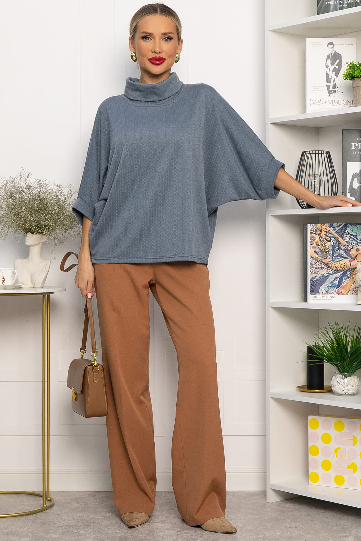 Самые непредсказуемые ансамбли и живописные образы позволяет создать джемпер, вписывающийся в самые разнообразные стили. Удобное, практичное, функциональное изделие позволит сочетать его с разнообразным низом, а мягкий трикотаж подарит комфорт в прохладную погоду. Джемпер имеет акцентную горловину, а рукава скроены по типу «летучая мышь». Свободный крой позволит скрыть недостатки фигуры.