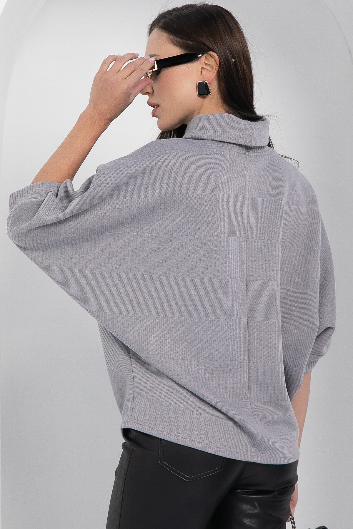 Самые непредсказуемые ансамбли и живописные образы позволяет создать джемпер, вписывающийся в самые разнообразные стили. Удобное, практичное, функциональное изделие позволит сочетать его с разнообразным низом, а мягкий трикотаж подарит комфорт в прохладную погоду. Джемпер имеет акцентную горловину, а рукава скроены по типу «Летучая мышь». Свободный крой позволит скрыть недостатки фигуры.
