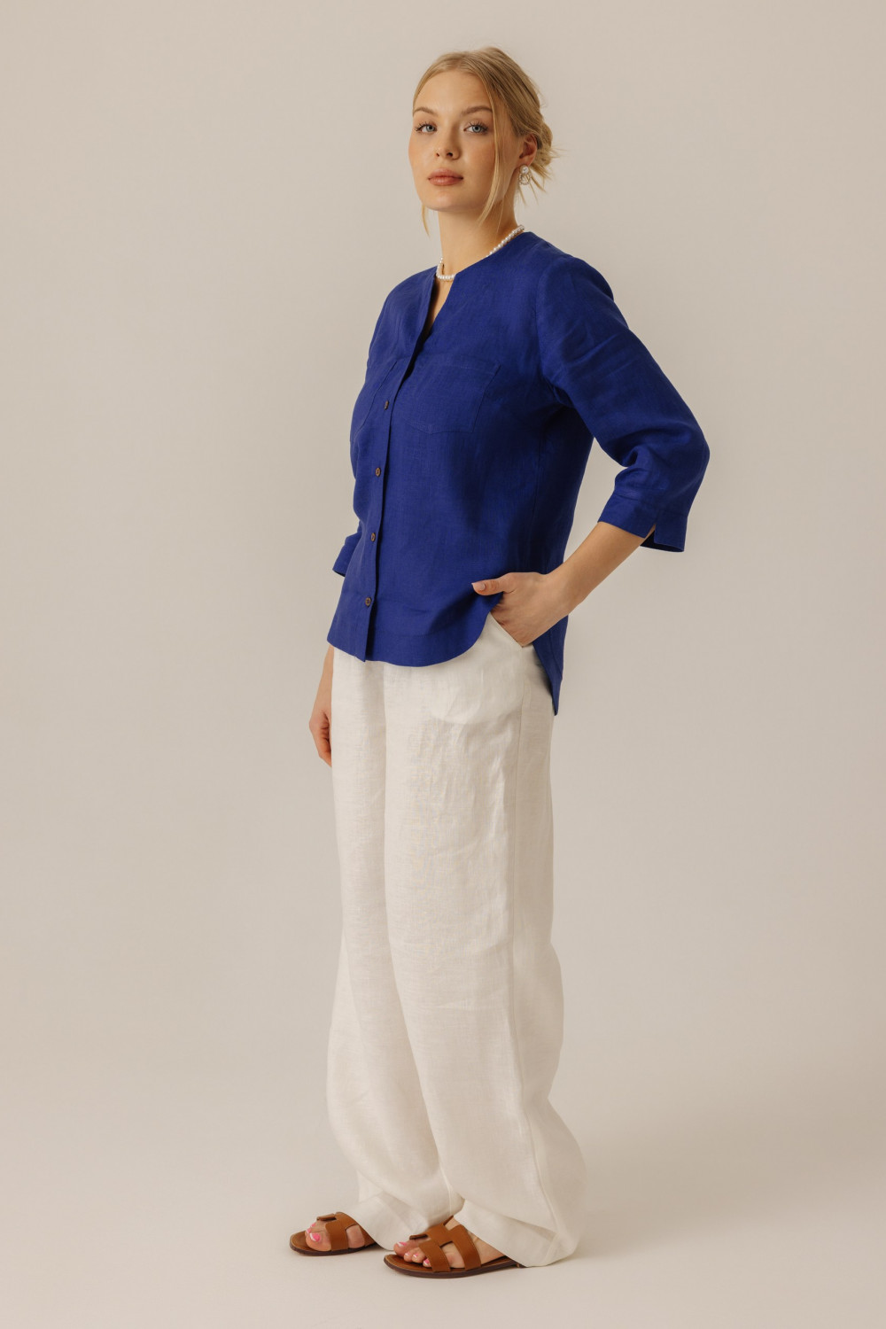 Блузка 100% лен, текстиль. Силуэт приталенный.