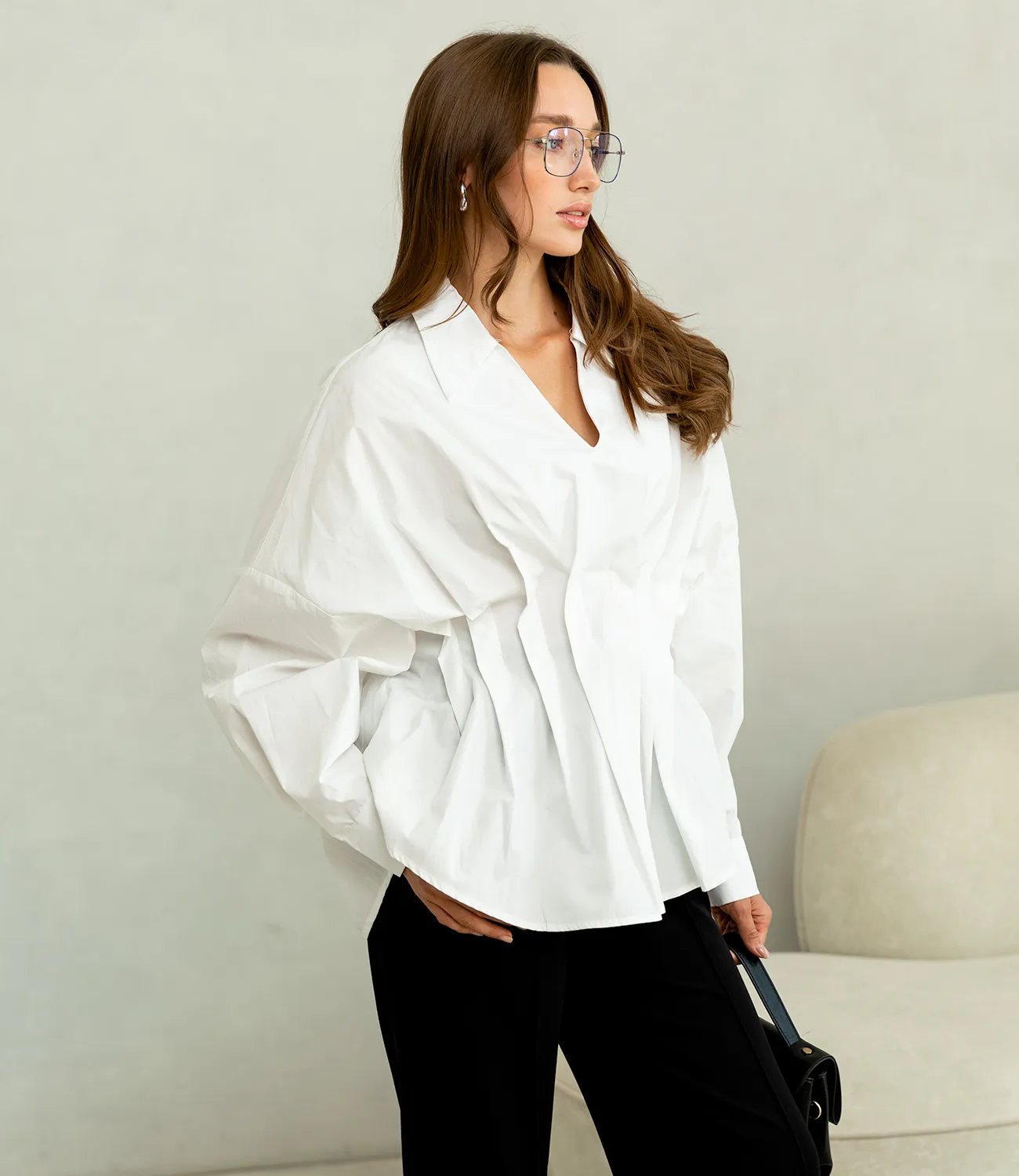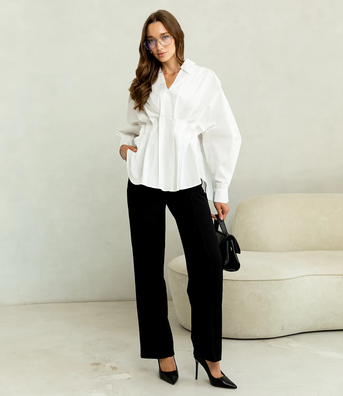 Блуза — это незаменимый элемент гардероба, который подчеркнет индивидуальность и стиль каждой женщины. Эта прекрасная модель, выполненная из 95% полиэстера и 5% хлопка, отличается легкостью, создавая воздушный и нежный образ. Свободный фасон, немного оверсайз с акцентом на талии за счет складок, которые уходят от центральной части вниз, создавая легкую драпировку и объем. Мы уверены, что эта модель привлечет внимание ваших покупательниц, ценящих сочетание качества и изысканного дизайна. Для уверенности в выборе размера на странице доступна таблица, что поможет им легко определить подходящий размер. Установленная цена является приемлемой и выгодной для оптовых покупателей, что делает вашу коллекцию еще более привлекательной. Не упустите возможность предложить своим клиентам эту удивительную блузу, которая добавит в их гардероб стиль и элегантность. Подарите вашим покупателям возможность чувствовать себя уверенно и привлекательно в любой обстановке! Рост модели: 168, параметры: 85-63-92.