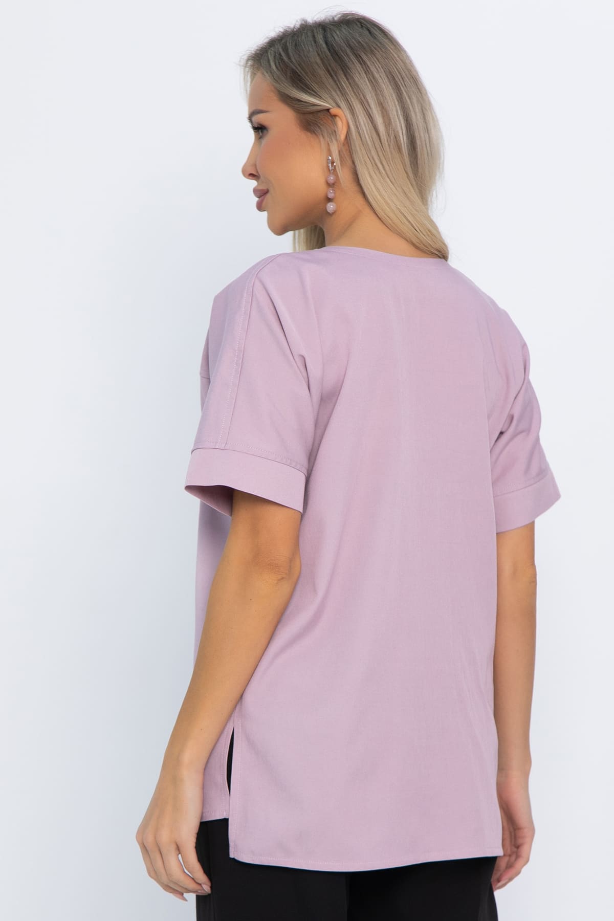 Блузка нежного пудро-лилового оттенка станет стильным дополнением к повседневным образам. Лёгкая, тонкая джинсовая ткань с содержанием вискозы, придающей особую мягкость материалу. Свободный силуэт «летучая мышь» обеспечивает свободу движения и дополнительный комфорт. По переду кокетка с округлой горловиной и спущенным коротким рукавом с манжетой. Блуза разработана с ассиметричным дизайном: спинка длиннее, а перед изделия короче, что создаёт интересный визуальный эффект. По боковым швам имеются разрезы. Ткань имеет хорошую способность впитывать и отводить влагу. Эластичная в носке, в составе полиэстер, требует менее аккуратного ухода, они меньше мнутся и легче стираются.