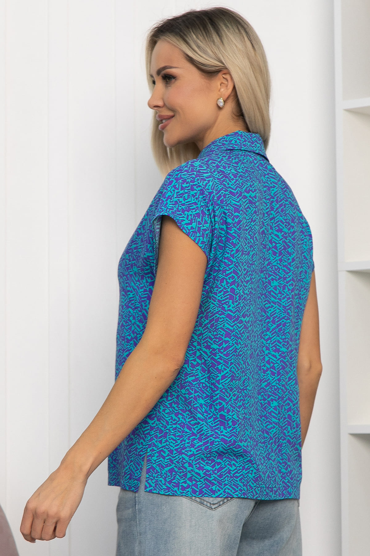 Невероятно блуза станет вашей любимой частью гардероба. Ее можно сочетать с различными элементами одежды и выглядеть превосходно. Рукав укороченный, цельнокроенный, поэтому в такой блузе будет комфортно в любую погоду. По бокам разрезы.