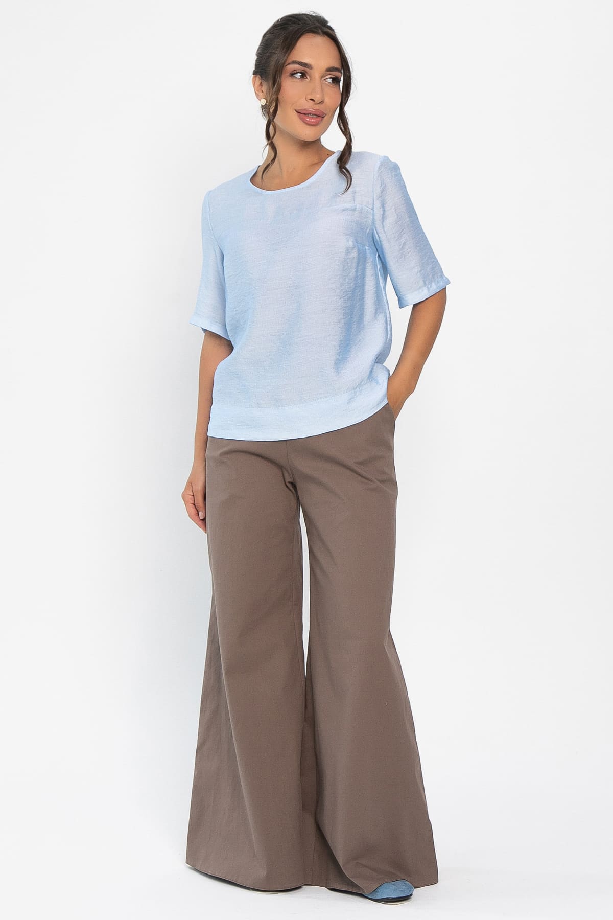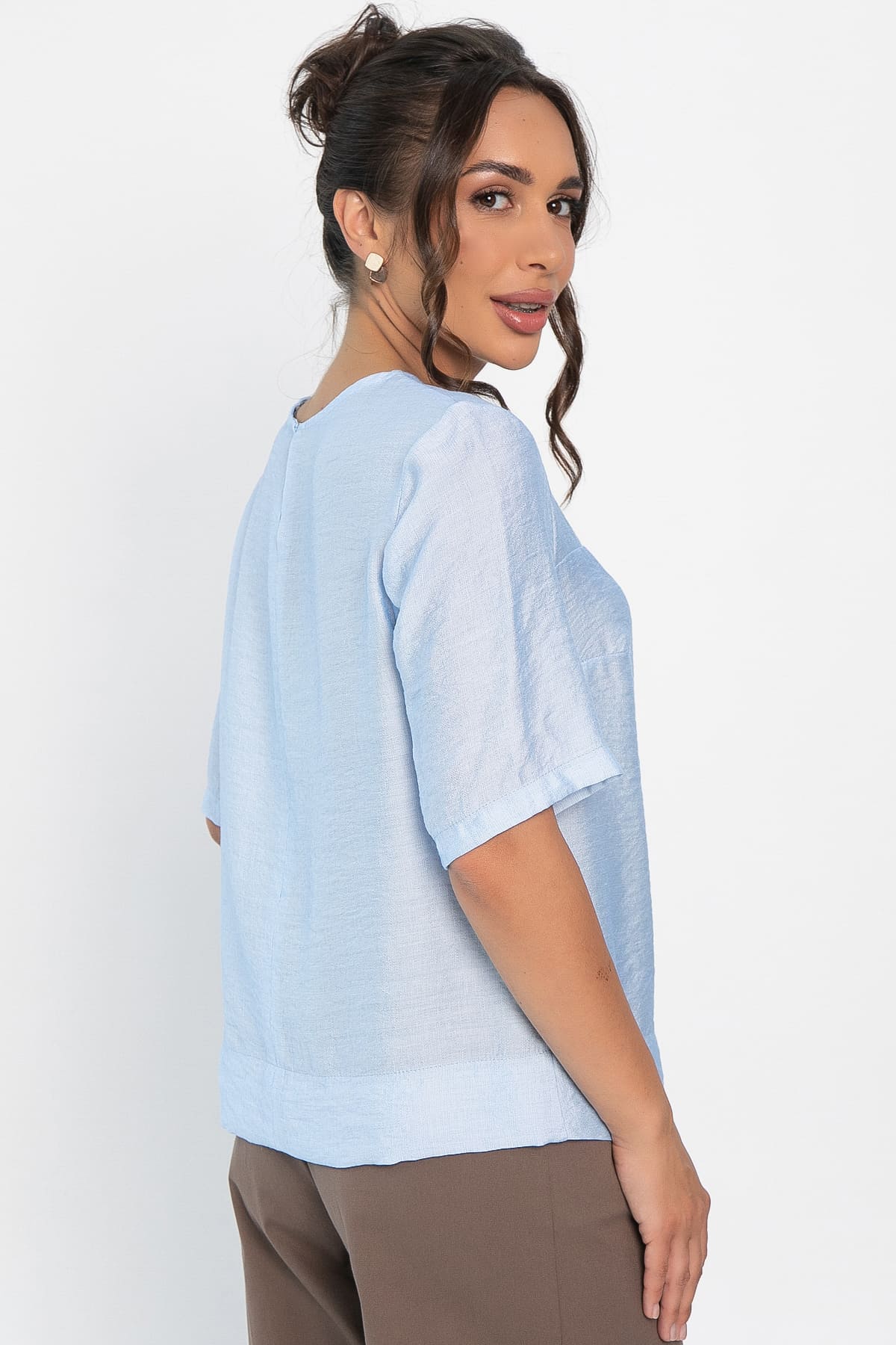 Блузка в нежном голубом оттенке, которая станет универсальным элементом вашего гардероба! Она подойдёт как для повседневных образов, так и для официальных мероприятий. Рукав втачной, горловина округлая. С этой базовой моделью вы сможете выразить свою индивидуальность и подчеркнуть свой стиль!