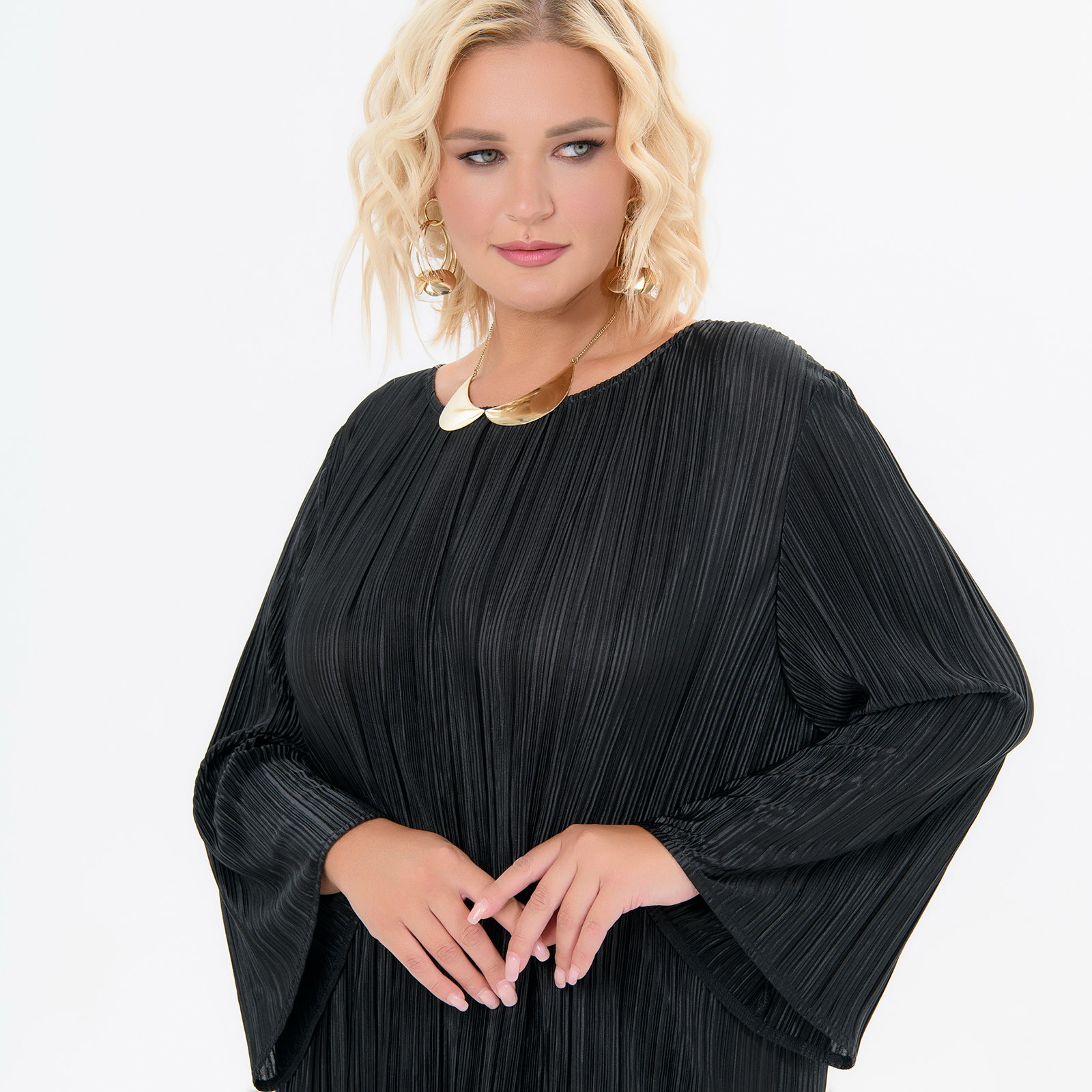 Стильная блуза силуэта "кокон" из легкой плиссированной ткани.