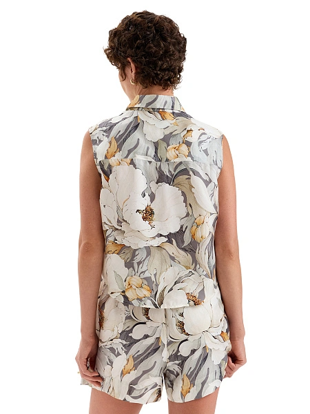 Блуза SILK женская без рукавов, цвет паттерн peonies