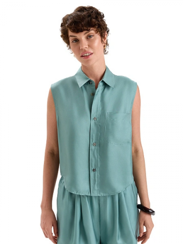 Шелковая блуза SILK – роскошная вещь для стильных повседневных образов. Укороченная, легкая модель свободного силуэта, без рукавов, с отложным воротником. Аккуратно, без излишнего облегания обрамляет фигуру, мягко подчеркивая ее достоинства. Открытый нагрудный карман добавляет практичности. Перламутровые пуговицы из натуральных ракушек органично коррелируют с благородной матовостью шелка. Блуза представлена в широкой палитре изысканных расцветок: небесный нежно-голубой, спокойный «шалфей», роскошный «шоколад», элегантный черный, а также в модных принтах: Toile de Jouy, Spring Garden и Peonies.