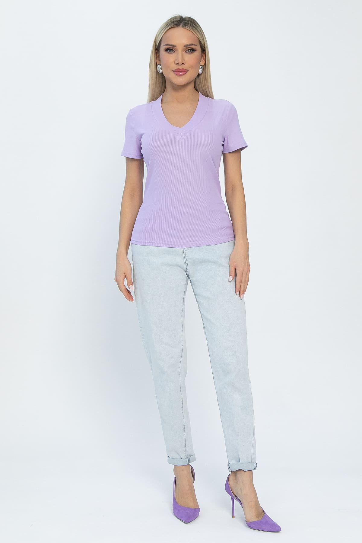 Однотонная блузка без принта – настоящий маст-хэв! Благодаря своей универсальности, она легко сочетается с практически любой одеждой, создавая множество стильных образов. V-образный вырез подчеркивает линию декольте, а короткий рукав делает ее идеальным выбором для теплого времени года или как базовый слой под пиджак или кардиган. Материал хорошо тянется.