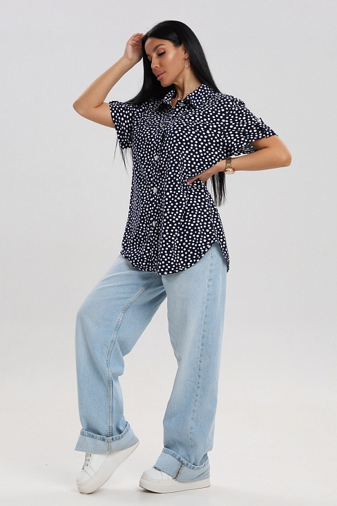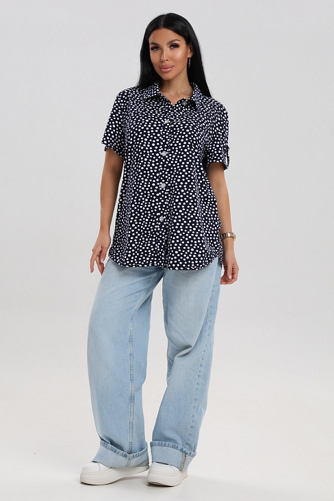 Блуза женская из кулирки Матильда / Горошек на тёмно-синем