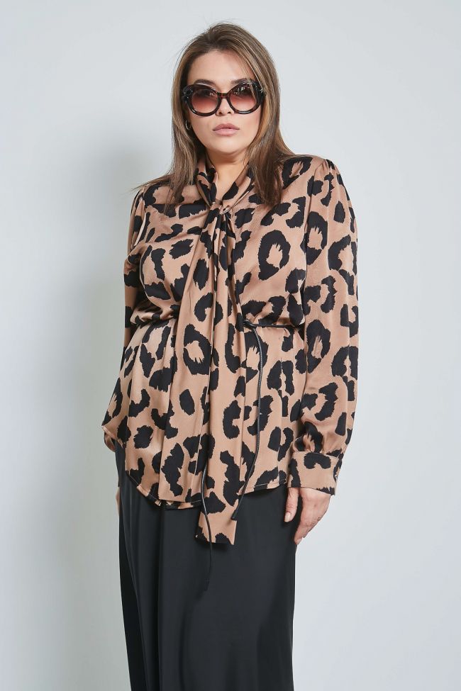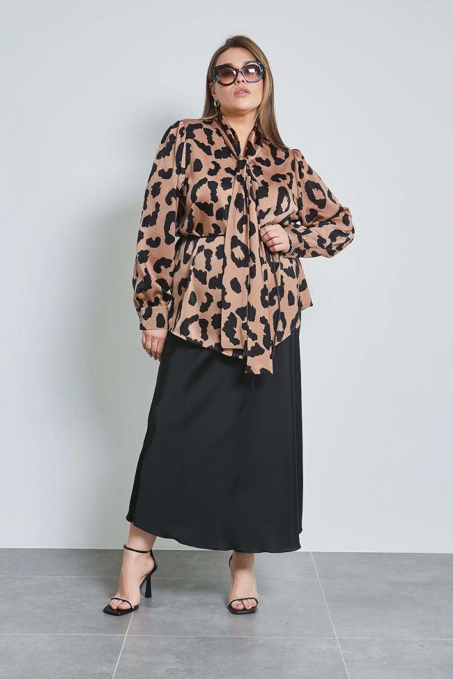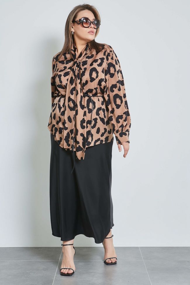 коричневый Блуза прямого силуэта из приятной вискозной ткани. По переду блузы центральная застежка на петли и пуговицы. V-образная горловина оформлена воротником-бантом. Рукава втачные длинные, на манжете с застежкой на петли ипуговицы. Низ блузы по бокам с актуальным закруглением. Модель станет отличным дополнением вечернего образа, составит гармоничный комплект юбкам и брюкам.