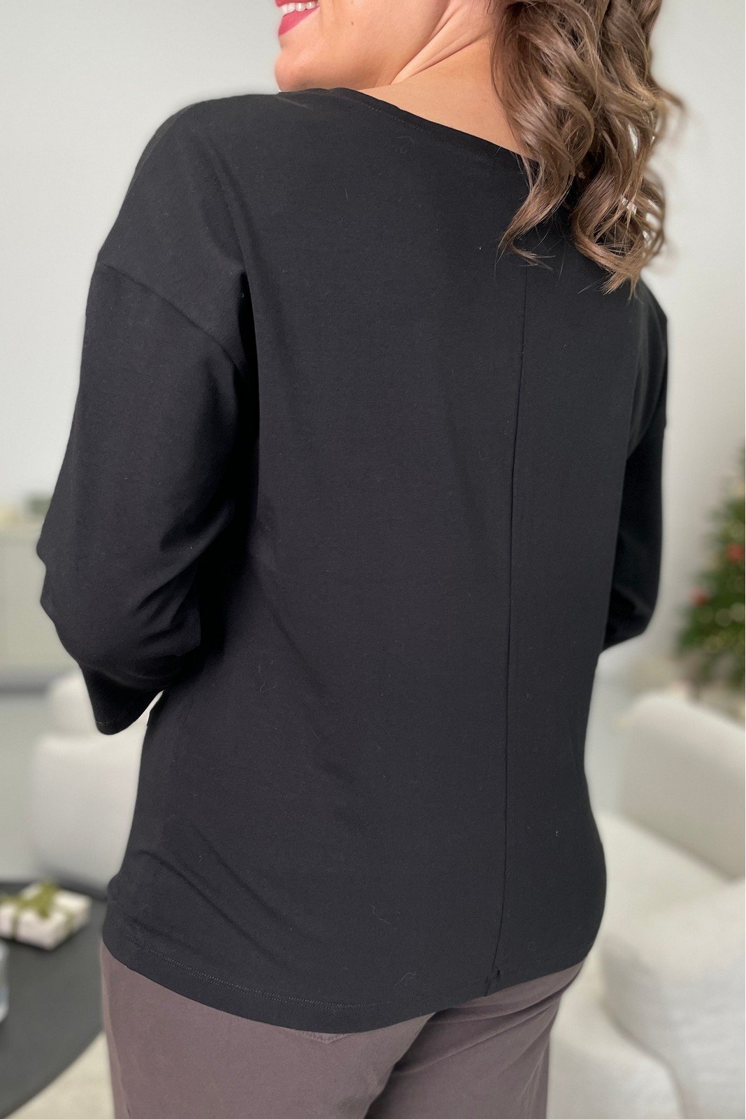 "Блузка прямого силуэта со спущенным плечом, из трикотажной ткани.