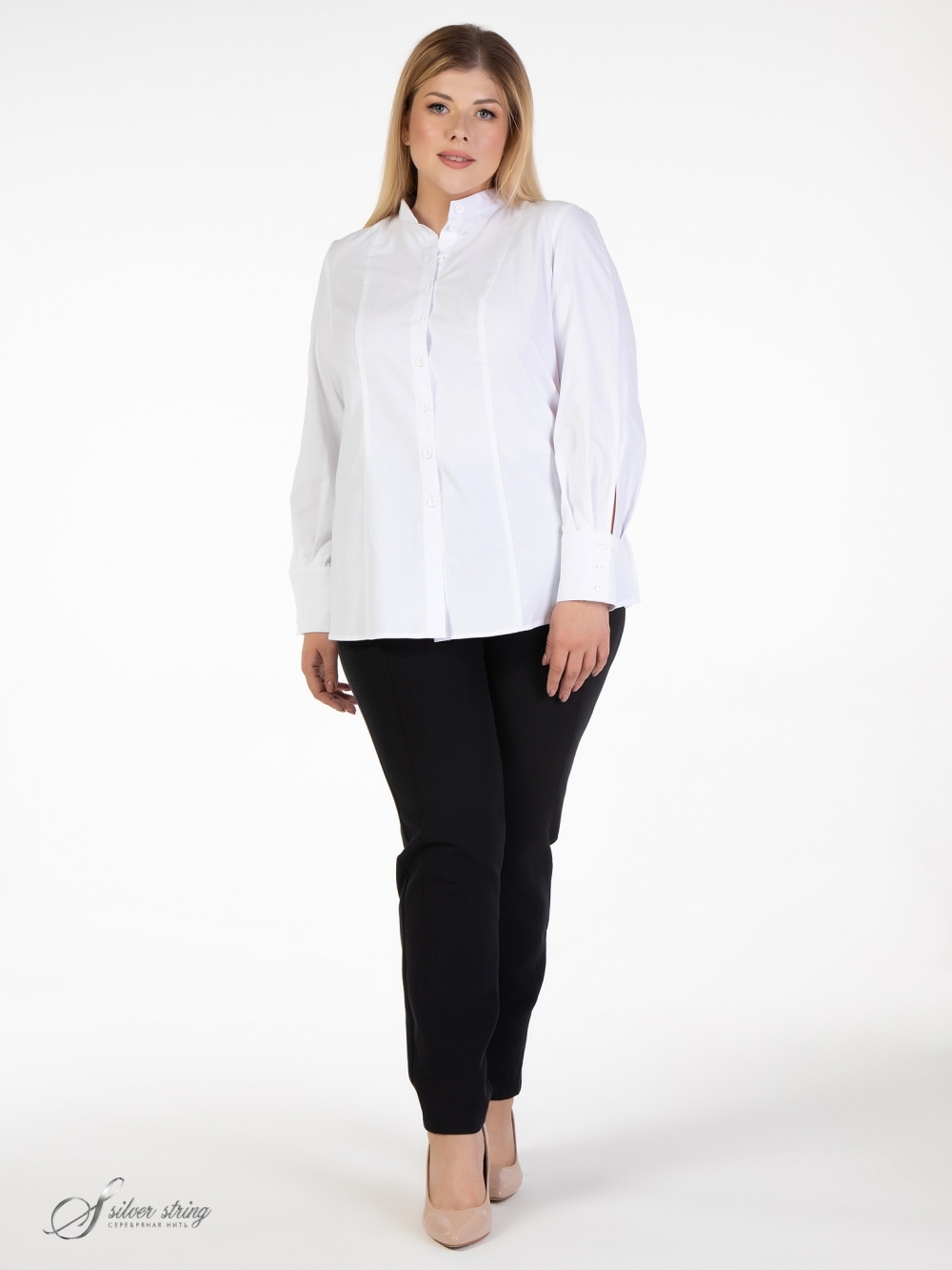 Современная блуза-рубашка прямого силуэта, в стиле «Casual», выполнена из смесовой натуральной ткани. Модель с воротником - стойкой и застежкой на пуговицы. Рукав втачной, длинный, с притачной манжетой по низу. Высота манжеты позволяет носить её на отворот, тем самым регулируя длину рукава. В боковых швах обработаны разрезы. Это классическая и, в то же время, универсальная модель, подходящая для разных случаев жизни. Она прекрасно впишется в Ваш гардероб и станет незаменимой при создании разнообразных комплектов.