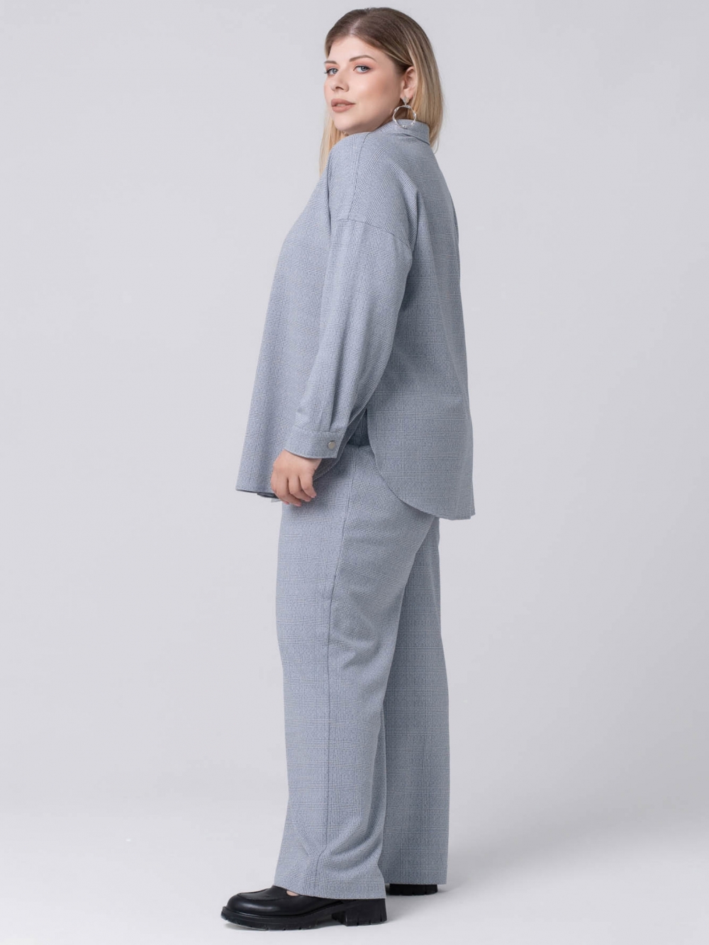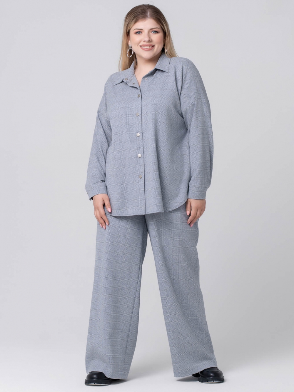 Стильная блуза-рубашка Т-образного силуэта выполнена из мягкой смесовой ткани с рисунком в клетку. Модель в спортивном стиле с рубашечным воротником и удлиненной линией плеча. Удобная застежка на кнопки подчеркивает лаконичность дизайна. Длинные, просторные рукава заканчиваются притачной манжетой. Обхват манжеты можно регулировать с помощью парных кнопок. Закругленные разрезы, в боковых швах, придают ей современный и непринужденный вид. Рубашка незаменима при создании разнообразных комплектов в качестве облегченного жакета. Эта модель— идеальный выбор для создания стильного и комфортного образа на каждый день.