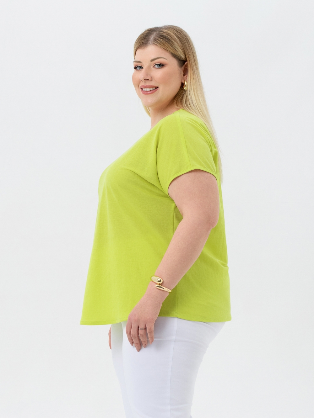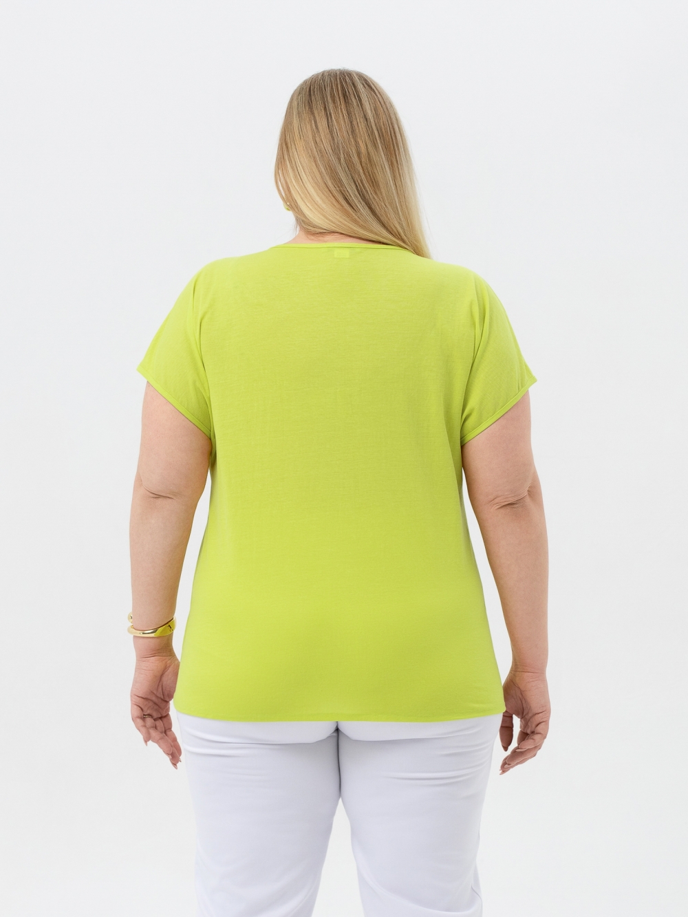 Элегантная блуза-топ выполнена из эффектного однотонного полотна. Изделие прямого силуэта, с цельнокроеным коротким рукавом. Вырез горловины округлой формы. Это базовая модель незаменима для создания комплектов для особенных случаев, когда надо выглядеть элегантно и стильно, как говорят французы: «Charmante!» (Очаровательно!)