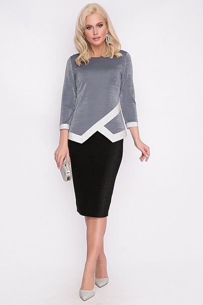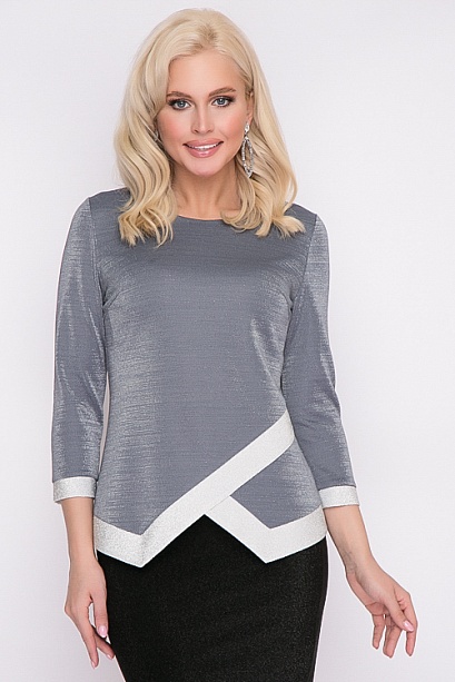 Блузка из трикотажа с блеском и контрастной отделкой из блестящего трикотажа.