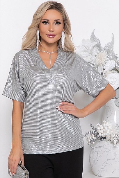 * Блузка из трикотажного полотна гофре с цельнокроеными рукавами и V-вырезом горловины.
