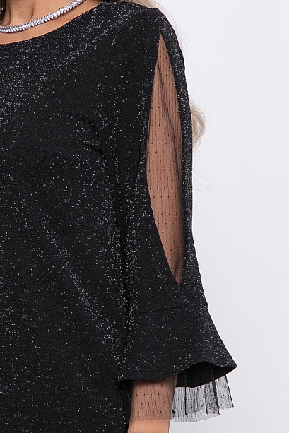* Нарядная блузка из трикотажного полотна с люрексом.Рукав 3/4 с оригинальной вставкой из сетки