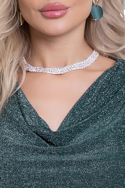 Блузка из трикотажного полотна с люрексом с цельнокроеными рукавами и вырезом качель.