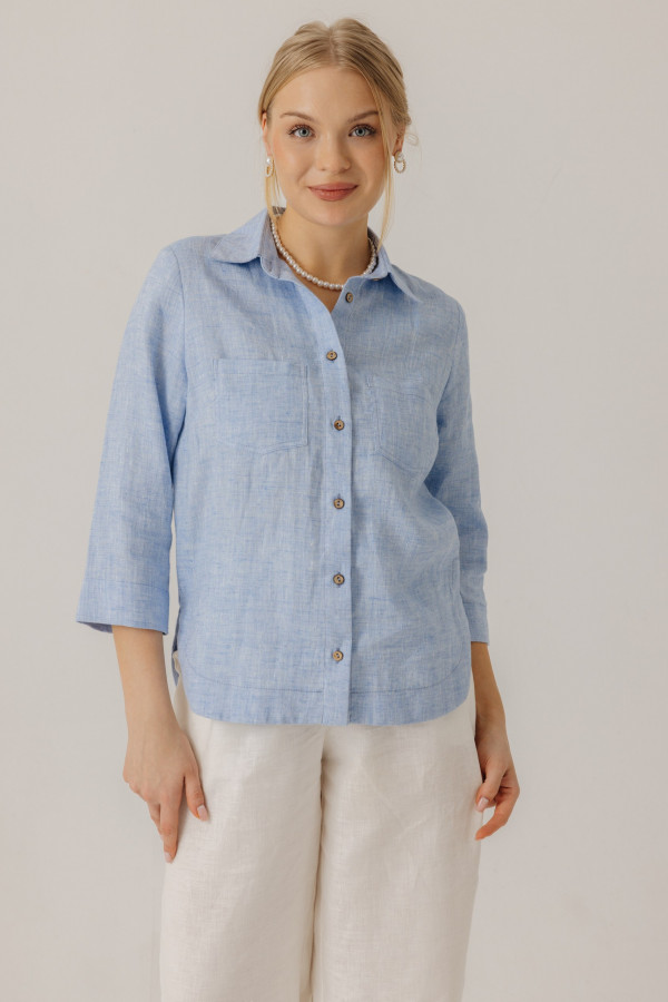 Блузка из льна 21-03 голубой