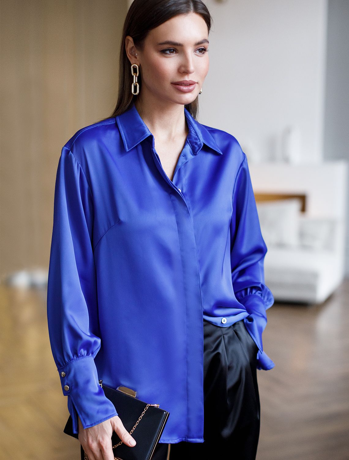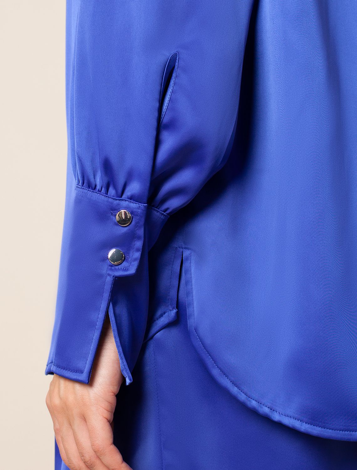 Блузка из плотного полуматового сатина с удлиненным манжетом D29.796 ультрамарин