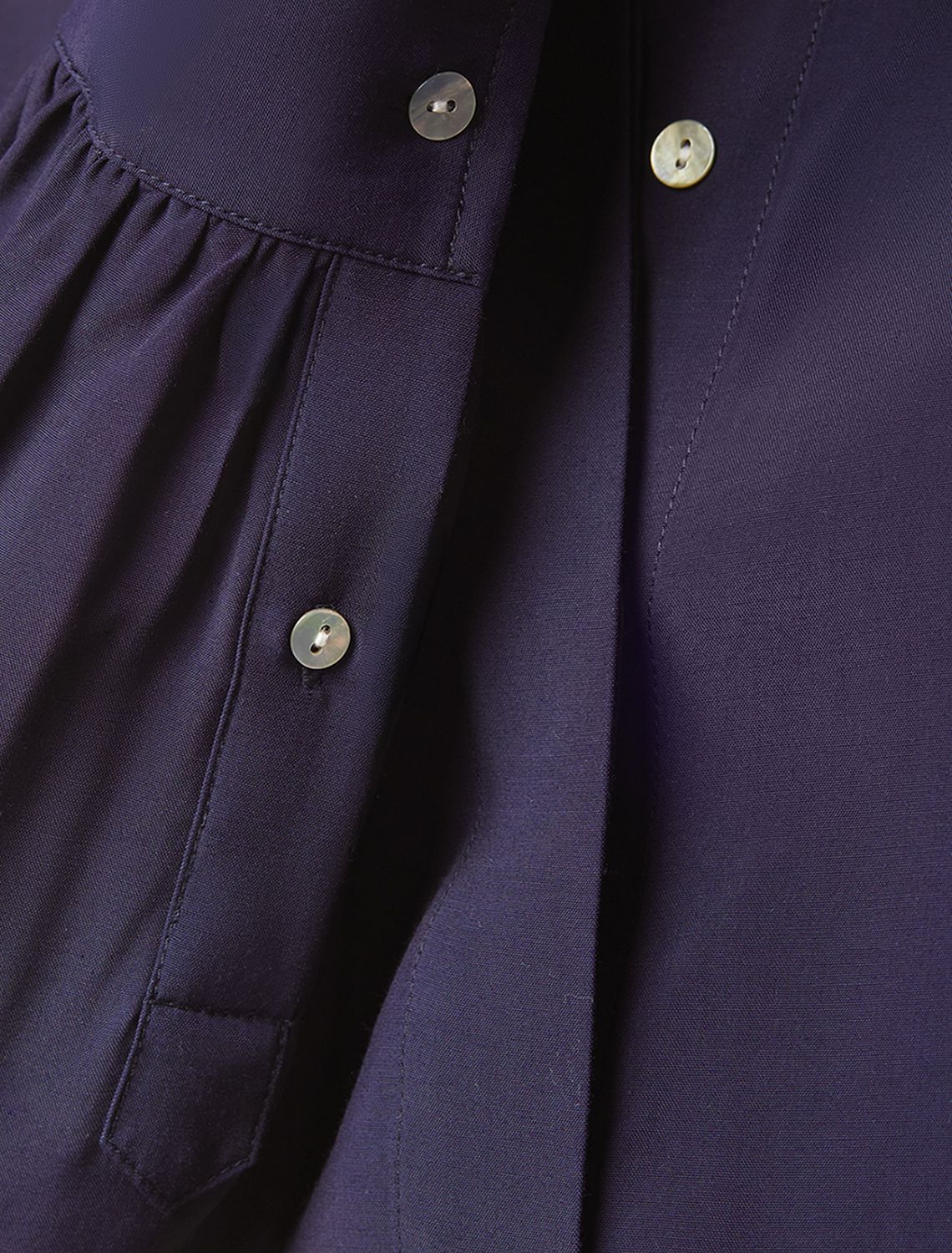 Блузка выполнена из премиальной вискозы и лиоцелла. На спинке изделия фирменный логотип бренда. Застежка на пуговицы из натурального перламутра. Приятная на ощупь ткань охлаждает кожу в жаркую погоду. Отлично впишется в нестрогий офисный дресс-код или в расслабленном повседневном образе с джинсами.