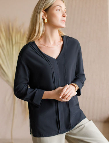 Блузка из премиальной вискозы и лиоцелла D29.232 т.синий