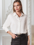 Летящая блузка с отложным воротником выполнена из премиальной вискозы и лиоцелла. Мягкий фактурный материал струится по телу. Вискоза обеспечивает отличную воздухопроницаемость и поддерживает комфортный микроклимат. Модель дополнена пуговицами из натурального перламутра, на спинке изделия металлический логотип бренда. Отлично впишется в нестрогий офисный дресс-код или в расслабленном повседневном образе с джинсами и юбками.