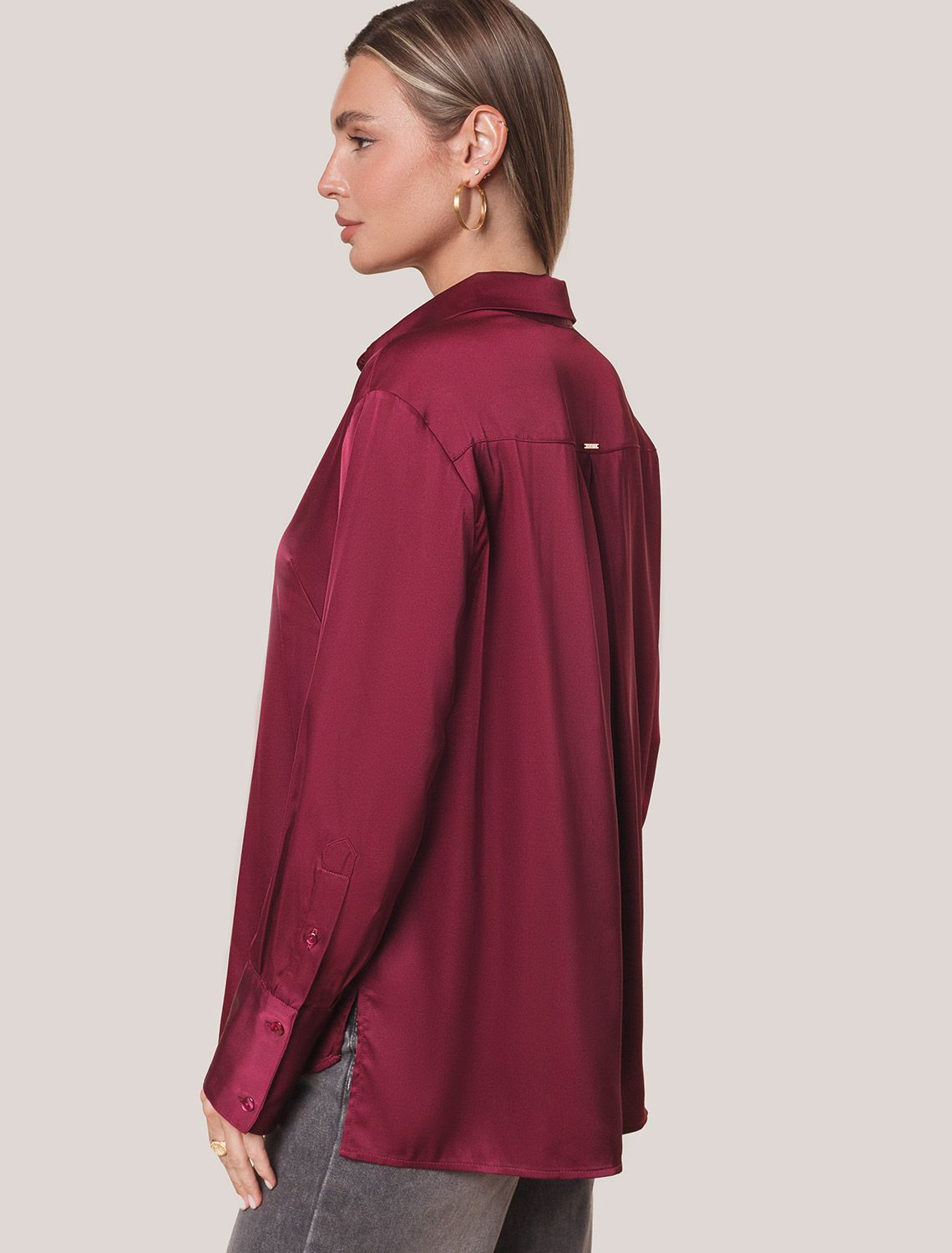 Сатиновая блузка с эластаном винного цвета – воплощение элегантности и комфорта. Благородный блеск сатина добавляет образу шика, а эластичность материала гарантирует удобство при носке. Прямой силуэт блузки обеспечивает комфорт, а эластичность материала предотвращает деформацию. Застежка-планка с потайными пуговицами придает модели аккуратность. Универсальный вариант для casual-образов. винный