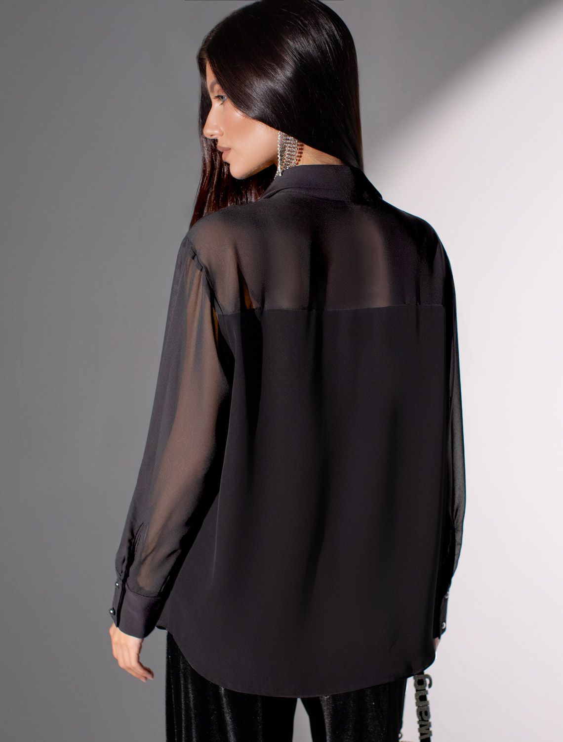 Элегантная блузка черного цвета создана для женщин, которые ценят стиль и комфорт каждый день. Полупрозрачный шифон в верхней части блузки придает образу легкость и утонченность, подчеркивая индивидуальность в любой ситуации. Такая нарядная блузка моментально преобразит повседневный лук, делая его более выразительным и женственным. Плотная ткань блузки красиво струится по фигуре, подчеркивая женственность. Оригинальный крой и продуманная отделка позволяют сочетать блузку с брюками, юбками или джинсами — вы всегда будете выглядеть свежо и современно. Текстура ткани обеспечивает максимальное удобство, а полупрозрачная структура добавляет загадочности без излишней откровенности. Стильная модель подходит как для деловых встреч, так и для прогулок по городу или вечерних мероприятий. Благодаря универсальности фасона легко создаются новые комбинации в зависимости от настроения и случая. черный