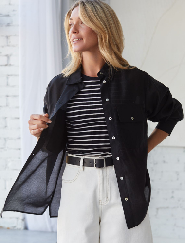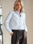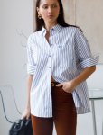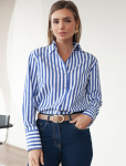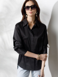 Блузка приталенного силуэта выполнена из эластичного хлопка. Безупречно сидит по фигуре не сковывая движений. Материал обладает высокой формоустойчивостью и воздухопроницаемостью, поддержвая оптимальный микроклимат в течении всего дня. Классический образ можно собрать в паре с черными прямыми брюками или юбкой с разрезами, повседневный расслабленный с джинсами или брюками с пу-покрытием.