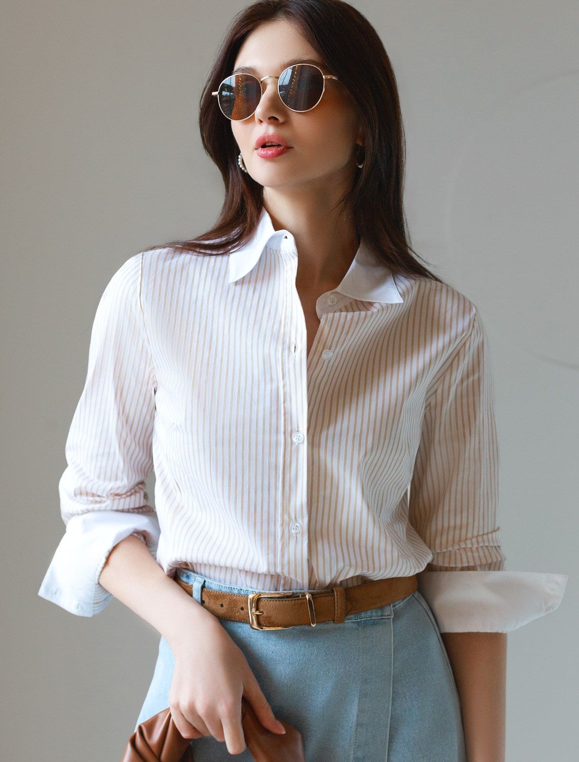 Стильная блузка белого цвета в желтую полоску приталенного силуэта подарит вам эффектный образ на весну и лето. Принт в полоску нейтральных оттенков освежает внешний вид и стройнит фигуру и визуально вытягивает силуэт. Такой вид полосатой ткани называется пестротканой — полосы созданы переплетением нитей разных цветов. Смешанный состав ткани идеален для деловых блузок: хлопок приятен к телу, полиэстер повышает долговечность, ПУ (эластан) придает комфортную растяжимость. Идеально подходит для деловой работы и повседневной носки, подчеркивая вашу женственность и уверенность. Манжеты аккуратно оформлены и придают блузке дополнительный шарм, а воротник держит форму, добавляя образу элегантности. Блузка представлена так же в больших размерах, чтобы каждая могла подобрать вариант по своей фигуре. Эта красивая рубашка отлично сочетается с разными стилями и станет обязательной частью летнего гардероба. Простая, но стильная вещь, которая подчеркнет вашу индивидуальность и создаст эффектный образ. белый-желтый