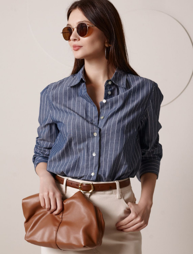 Блузка приталенного силуэта в полоску из эластичного хлопка