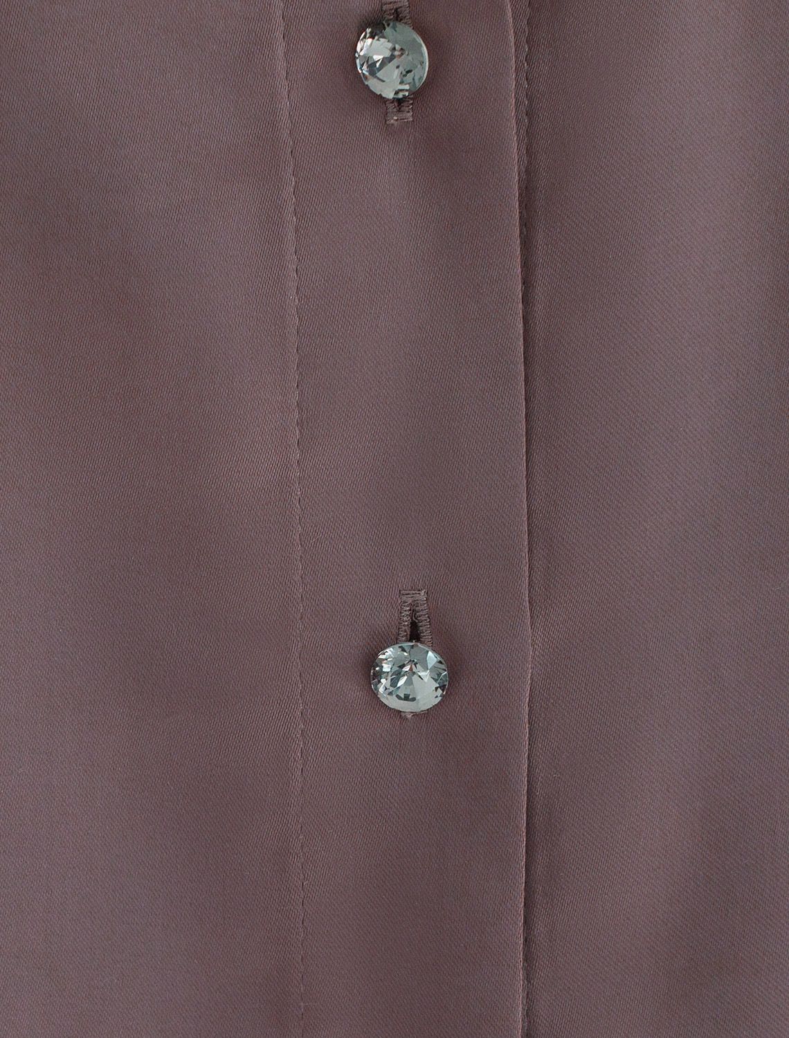 Элегантная блузка кофейного цвета на пуговицах выполнена из плотного струящегося сатина, который мягко ложится по фигуре и создает эффектную посадку. Отложной воротник придает образу женственную и изящную нотку. Материал отличается дышащей структурой, благодаря чему комфорт сохраняется даже в течение всего дня. Широкие рукава обеспечивают свободу движений и подходят для полных рук, делая блузку универсальной для разных типов фигур, в том числе для больших размеров. Красивая гладкая фактура материала подчеркивает утонченность изделия, добавляя легкое сияние к любому образу. Благодаря продуманному крою эта рубашка смотрится стильно как в повседневной жизни, так и на особых мероприятиях. Ткань практична, она приятна на ощупь, легко ухаживается и долго сохраняет первоначальный вид даже после многократных стирок и активной носки.