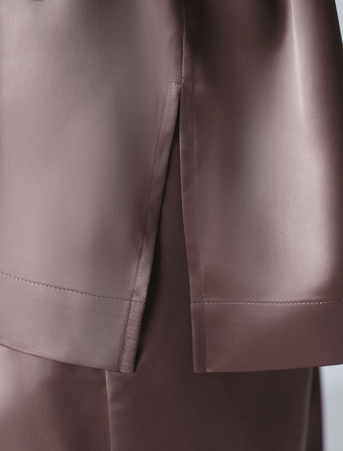 Блузка смотрится нарядно благодаря сочетанию мягкой текстуры сатина и его мягкого не вычурного блеска. Такая повседневная блузка легко впишется в деловой гардероб или станет отличным выбором для вечерней встречи с друзьями. Она гармонично сочетается с юбками, брюками или джинсами — вы сможете создать множество вариантов нарядов на каждый день или подобрать подходящий лук для особого случая, праздника или Нового года.