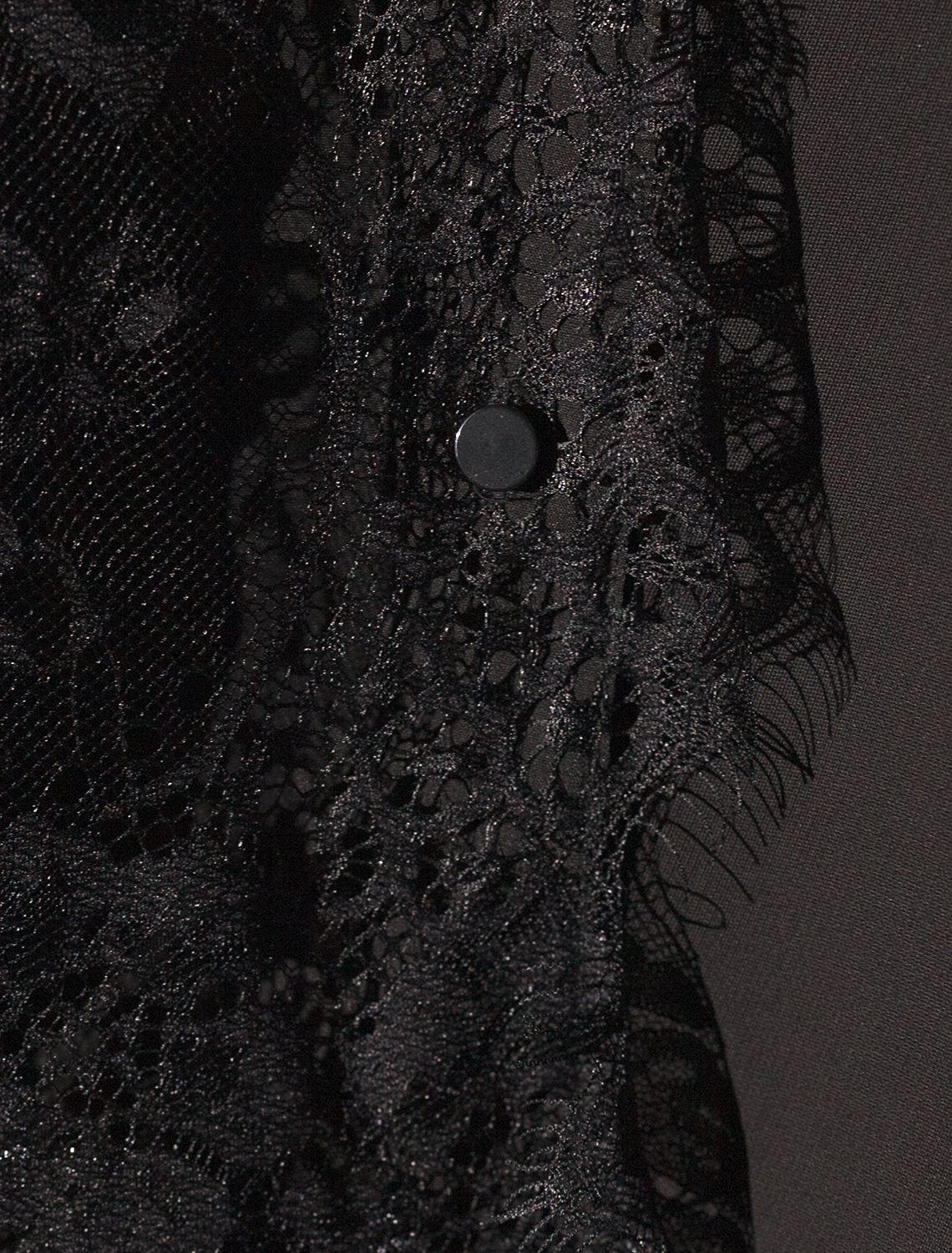Блузка черного цвета из креп шифона сочетает в себе современные тенденции и классику, позволяя выглядеть элегантно как на торжественном событии, так и на деловой встрече. Материал обеспечивает легкость и комфорт, а изысканное кружево добавляет нотки женственности и утонченности. Нарядная отделка подчеркивает индивидуальность обладательницы, делая образ запоминающимся. Эта рубашка - универсальное решение для разных случаев: она идеально подходит для особых вечеров, торжеств или создания повседневного лука с акцентом на элегантность. Благодаря удачному крою изделие садится по фигуре, не сковывает движения и дарит ощущение свободы в течение всего дня. Деликатное кружево гармонично сочетается с фактурой ткани, формируя стильный внешний вид без лишней вычурности, такой вариант подойдет для создания романтического стиля или дополнения делового гардероба. черный