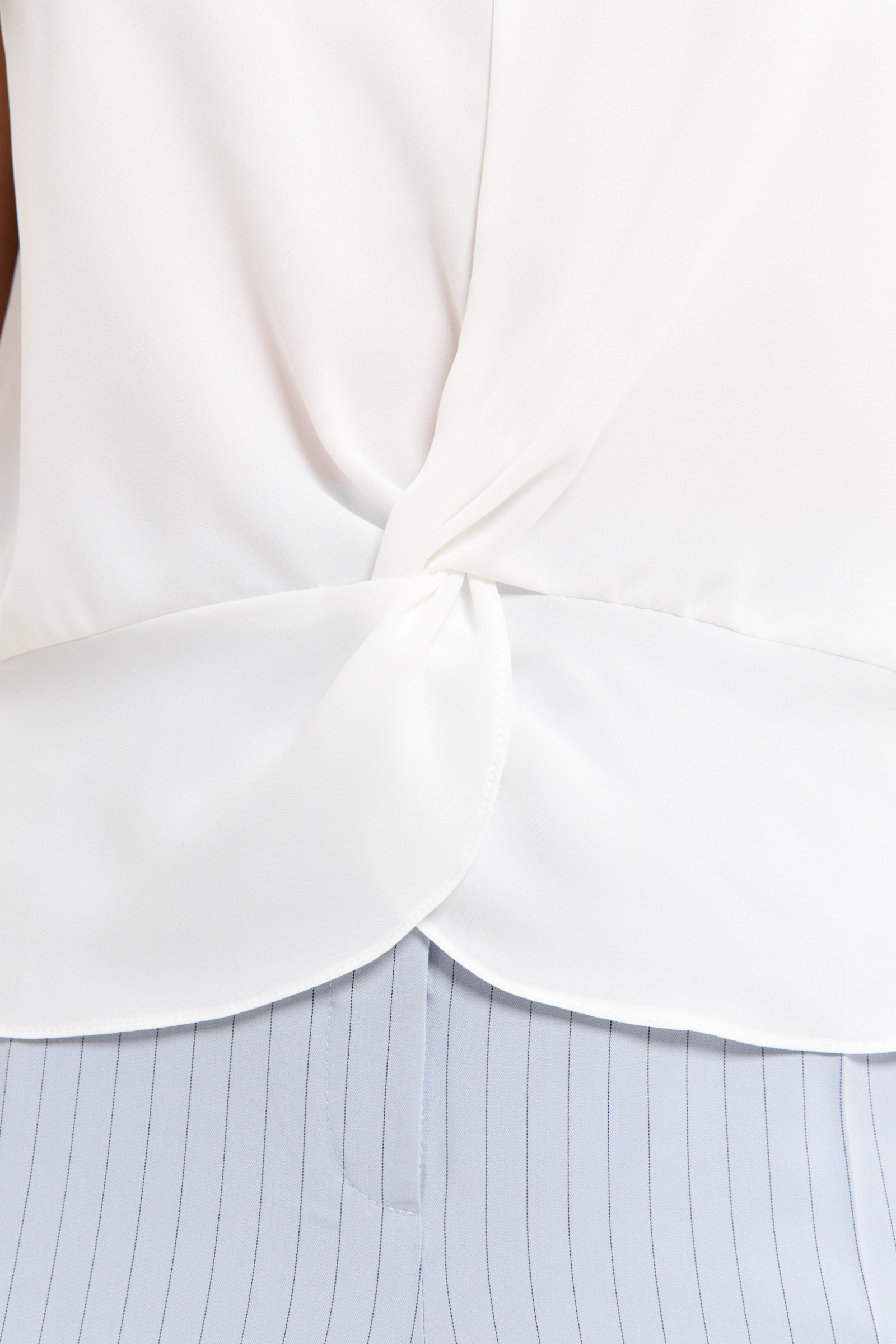 Блуза из струящейся ткани для повседневной носки. Изделие свободного силуэта с V-образной горловиной. По переду дизайнерский элемент в виде перекрута. Длина изделия классическая. Красивая блузка, которая будет радовать вас своим внешним видом.