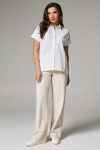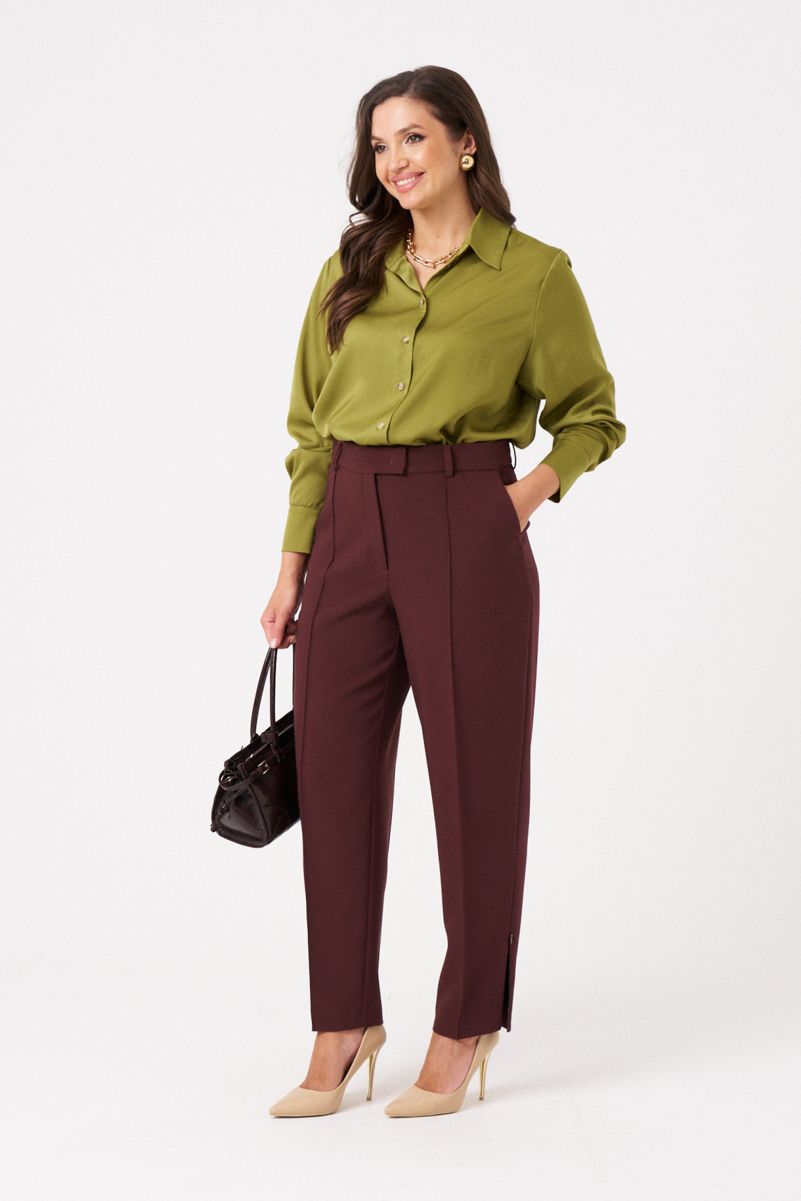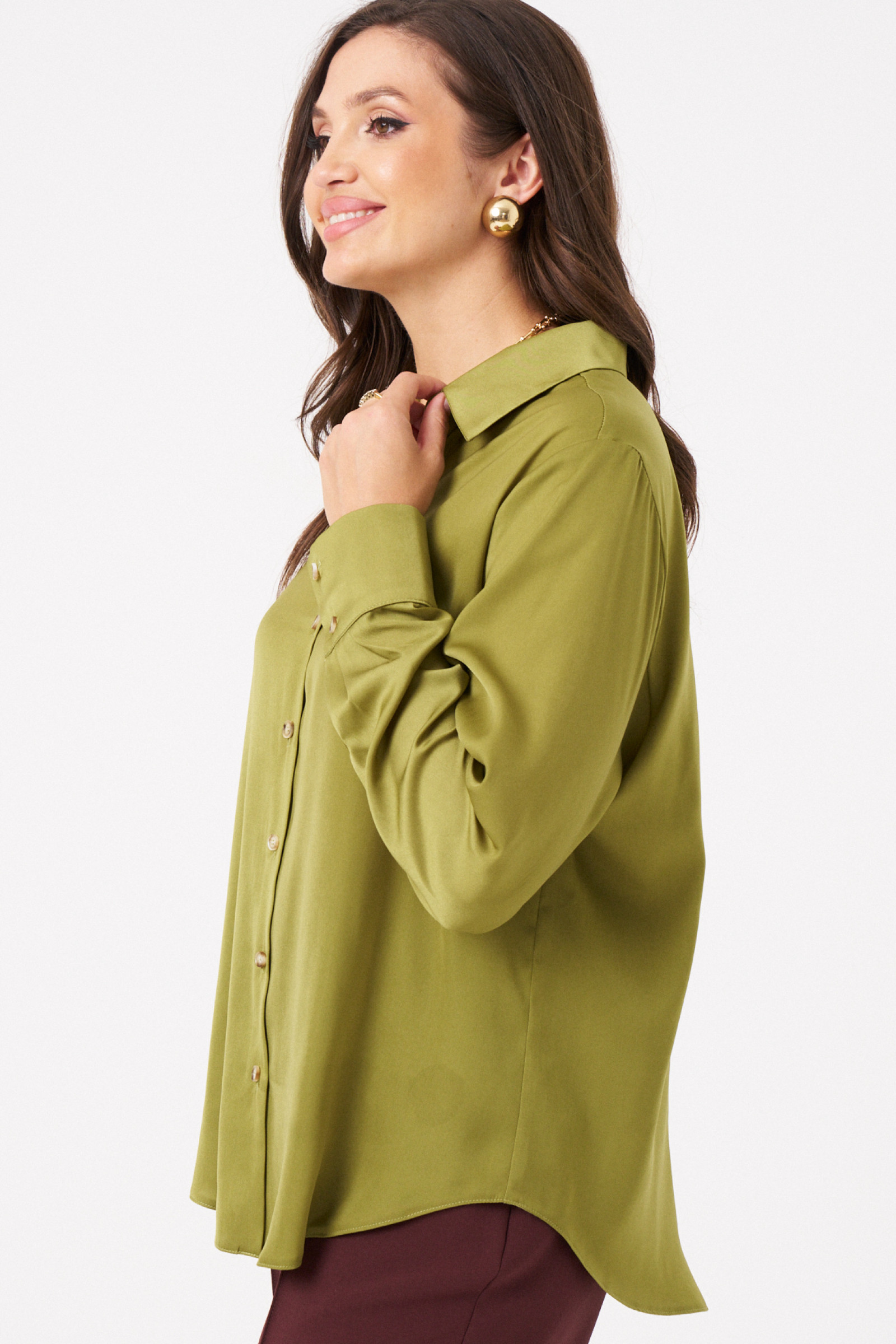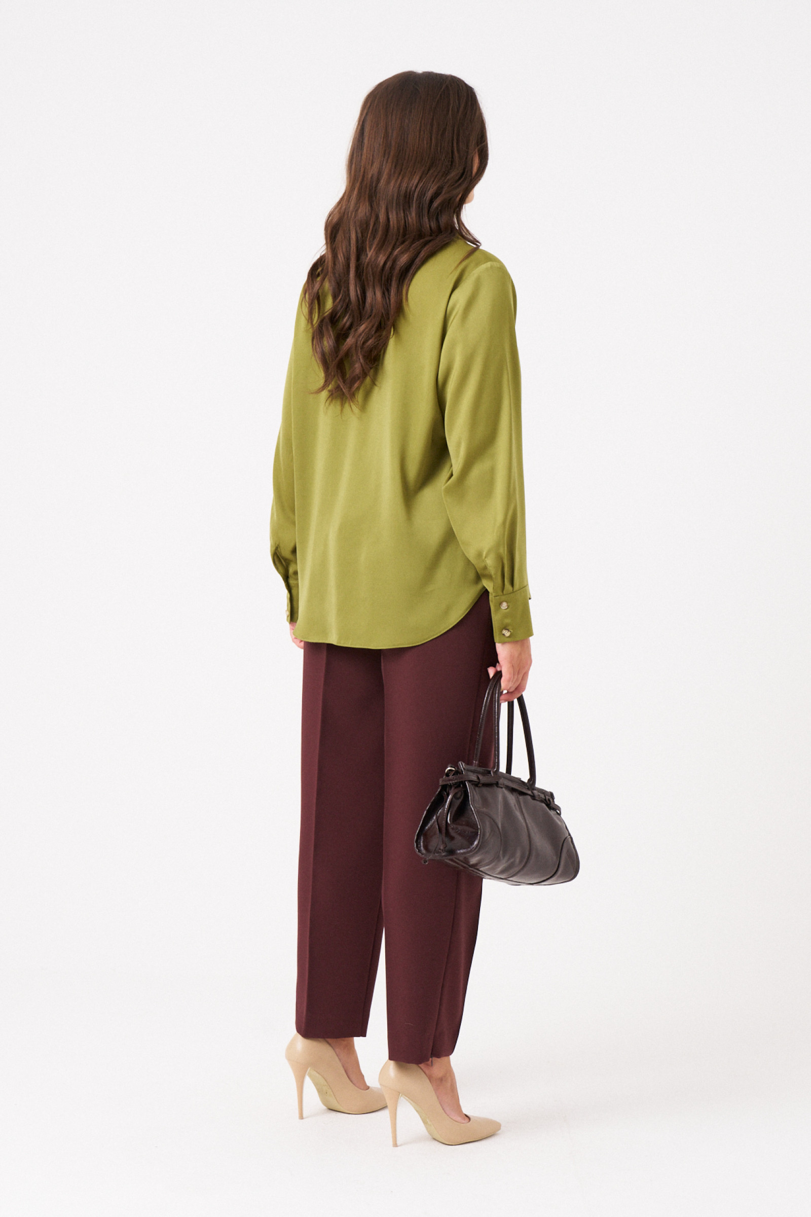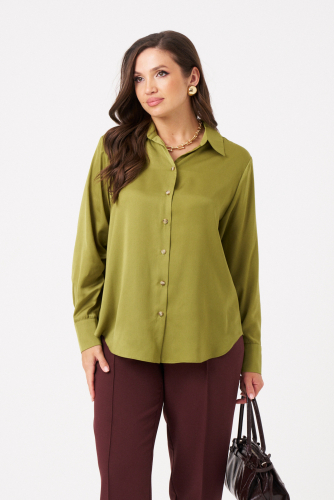 Эта стильная женская блузка оливкового оттенка идеально подойдет для повседневной носки. Выполненная в прямом силуэте, она обеспечивает комфорт и свободу движений. Ткань поливискозная, струящаяся, что придает изделию легкость и изящность. Перед украшен центральной бортовой застежкой на обметанные петли и пуговицы, а низ изделия выполнен с закругленным краем, добавляя изящества образу. Горловина оформлена классическим рубашечным воротником, а рукава завершены притачными манжетами с застежками на две обметанные петли и пуговицы — практично и стильно. Эта очень легкая и практичная блузка станет отличным выбором для ежедневных образов, сочетая комфорт с элегантностью и привлекательностью.