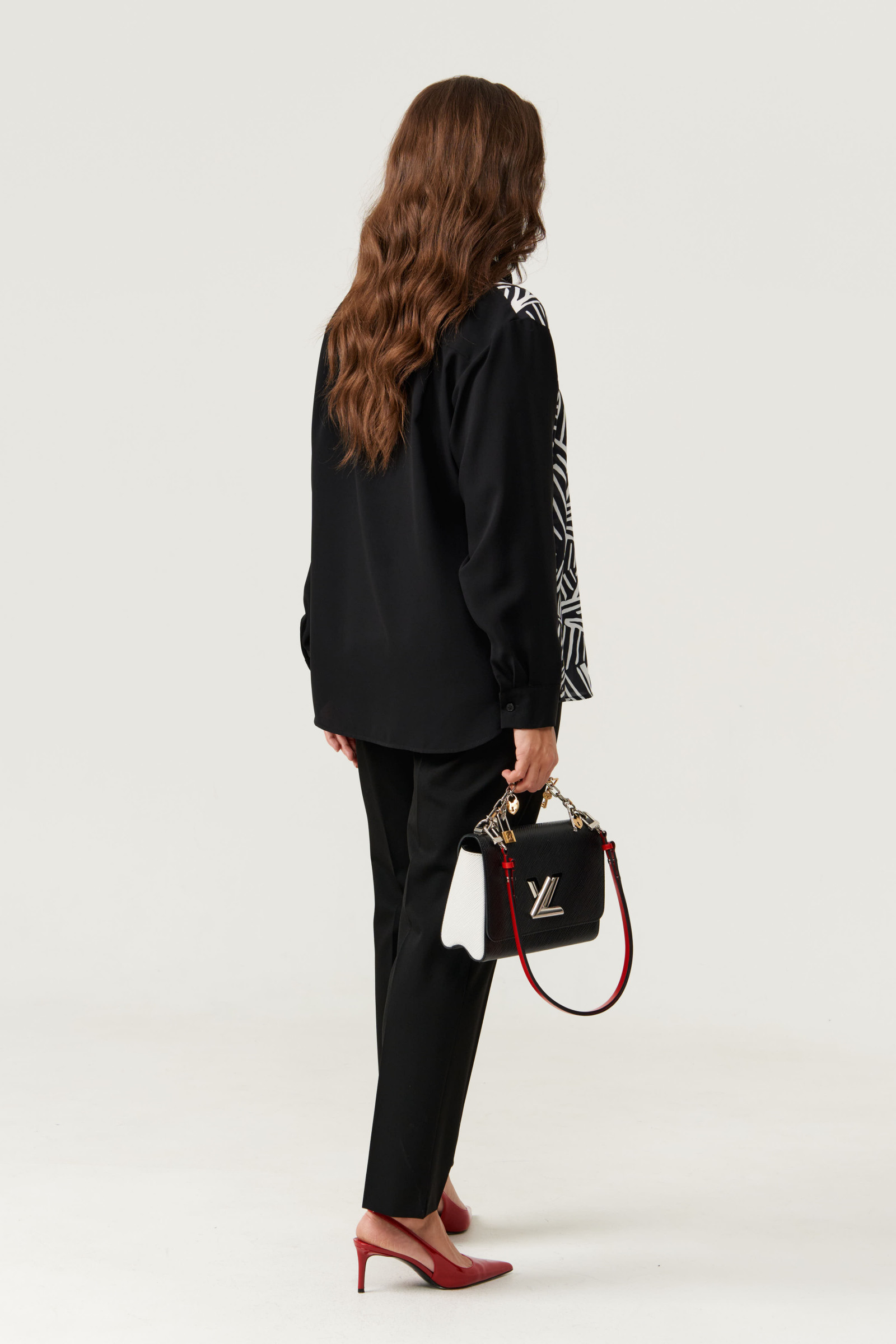Блузка женская для повседневной носки прямого силуэта. Перед имеет накладной нагрудный карман. По переду имеется центральная бортовая застежка на восемь обметанных петель и восемь пуговиц и с закругленным низом изделия. Спинка с кокеткой и двумя складками. В боковом шве имеются небольшие разрезы. Горловина обработана рубашечным воротником. Низ рукава обработан притачной манжетой с застежкой на две обметанные петли и две пуговицы. Очень легкая и практичная блузка на каждый день, в ней вам будет очень комфортно, а главное вы всегда будете в центе внимания.