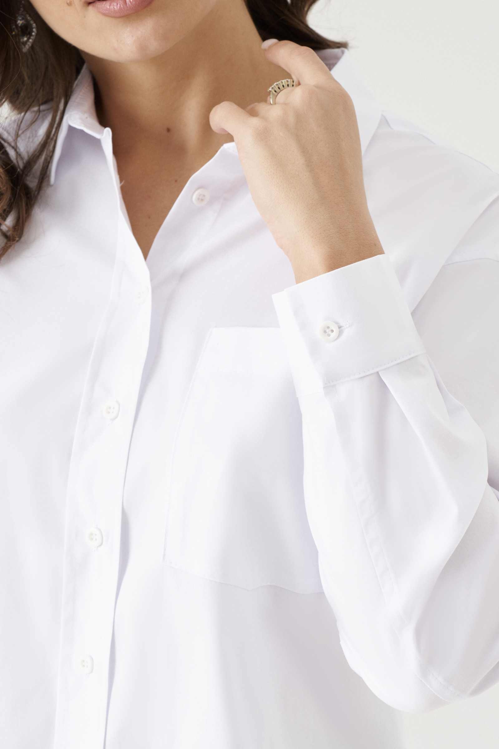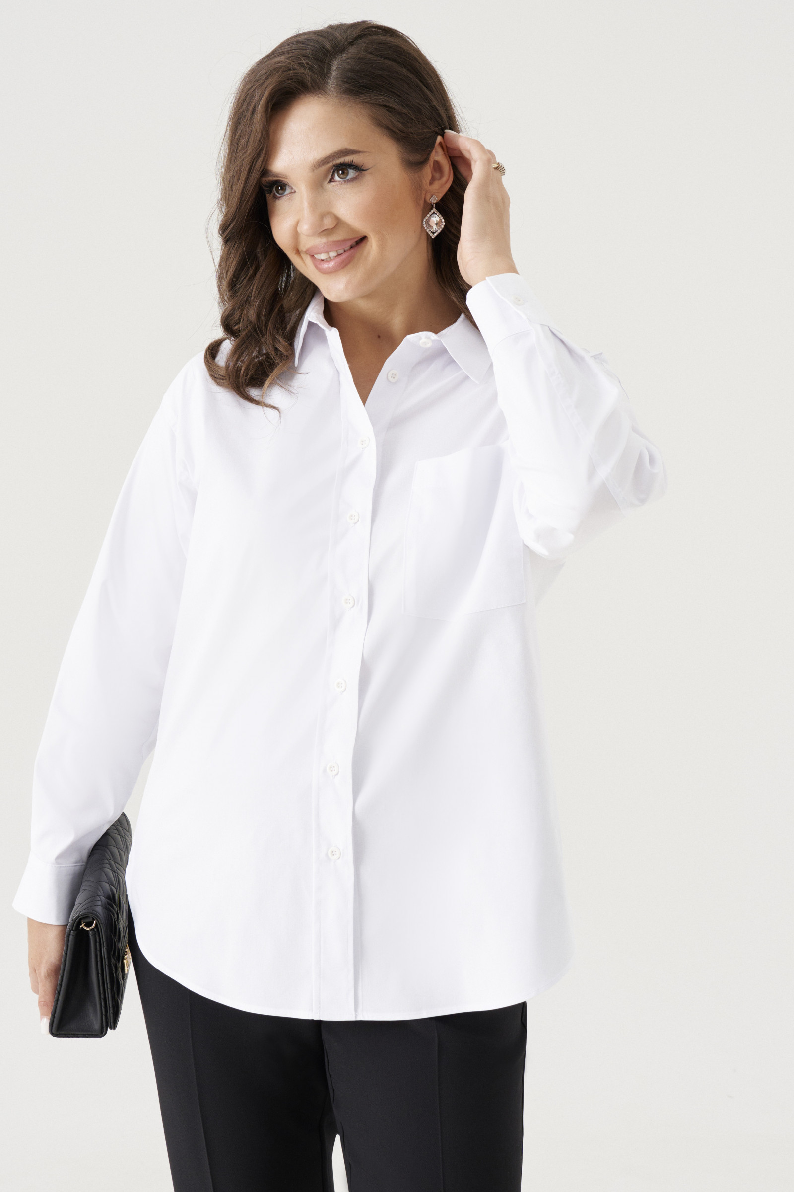 Элегантная блузка женская – неотъемлемый элемент базового гардероба. В ней можно ходить на учебу, работу, вечеринку, гулять по парку. Рубашка женская оверсайз поможет создать деловые, офисные, повседневные образы. Хлопковая блузка приятная на ощупь, хорошо пропускает воздух к телу и дарит комфорт. Ее можно носить самостоятельно или сочетать с жакетом, кардиганом, шубкой и курткой. Блузка с длинным рукавом подойдет как для прохладного лета, так и для межсезонья. Вы можете купить белую блузку на пуговицах в размерах 42-50 и сочетать ее с укороченными брюками, клеш или джинсами.