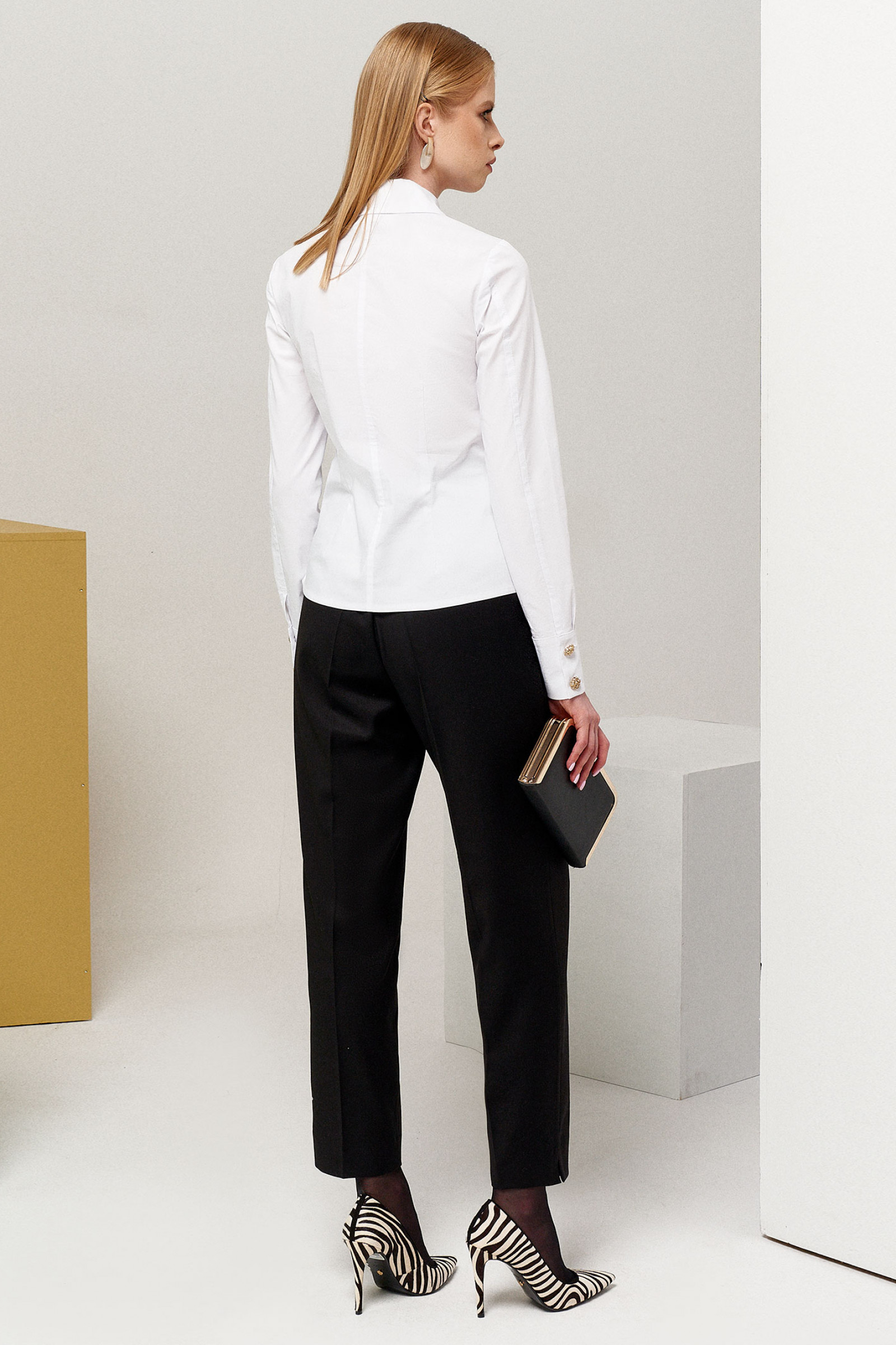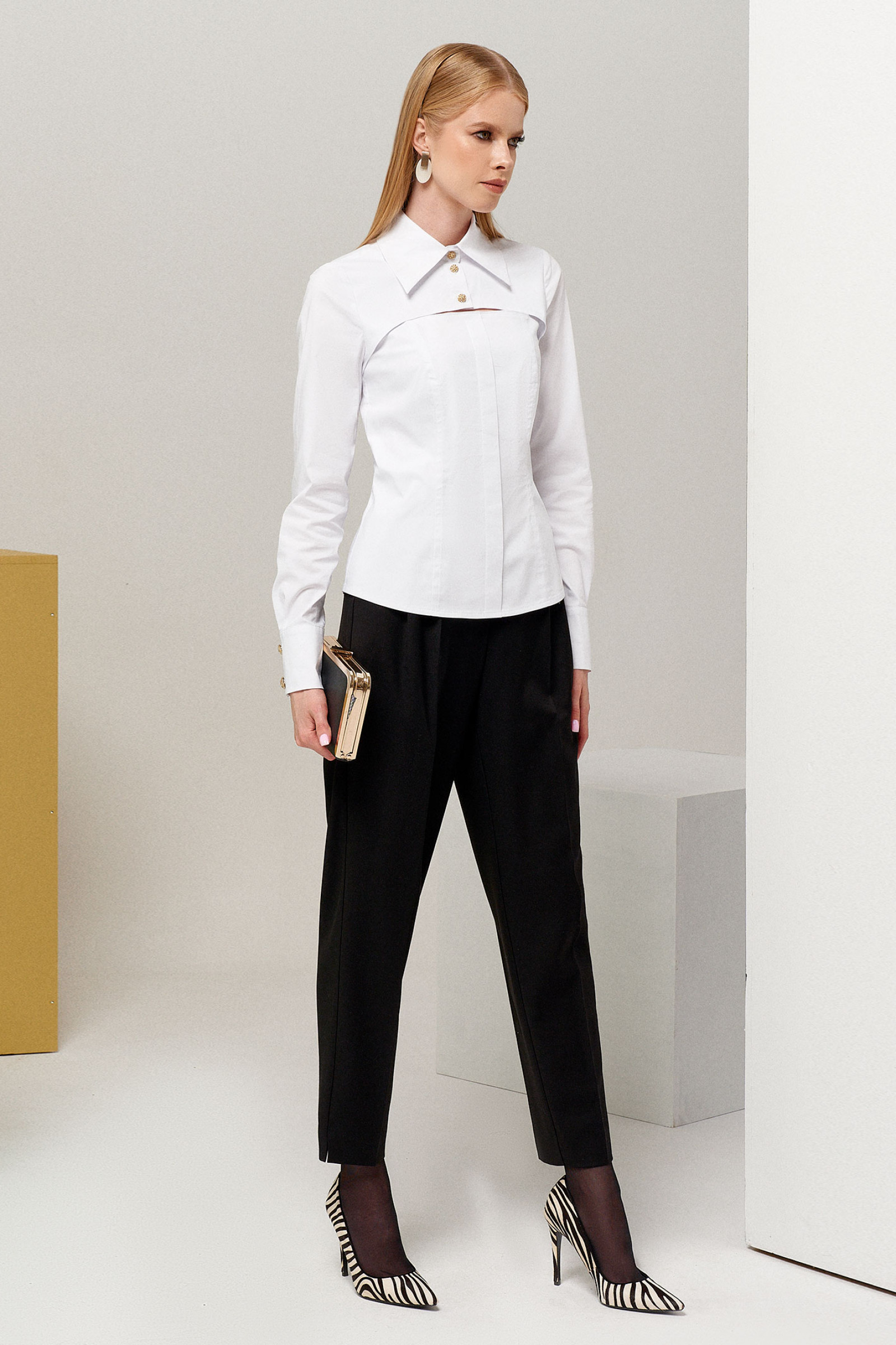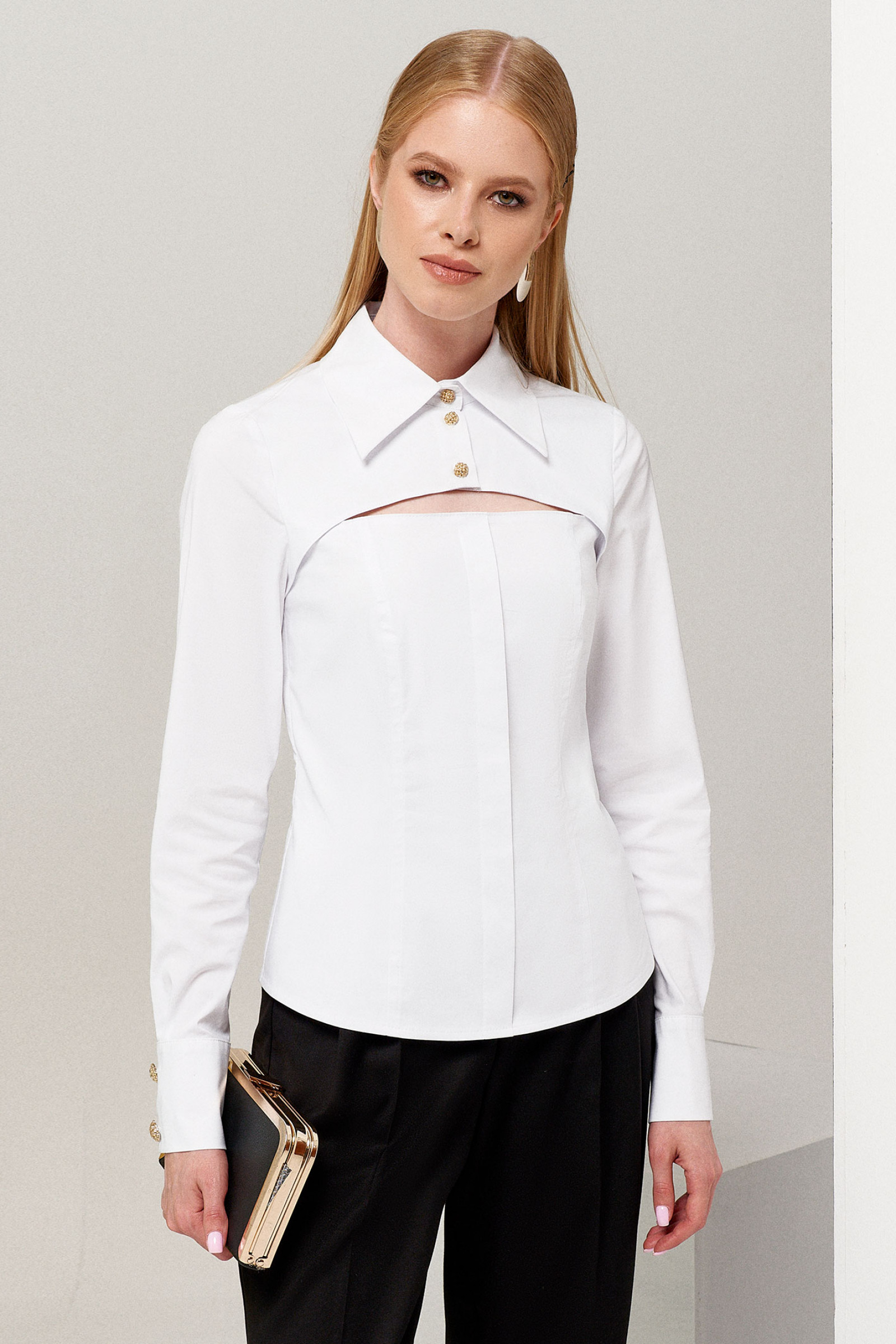 Блузка с длинным рукавом - это классика, комфортная и стильная одежда для взрослых женщин, девушек и подростков. Силуэт приталенный. Может носиться как школьная, в институт и офис. Базовая блузка без рисунка и карманов подойдет для холодного лета и теплой осени, зимы и весны, будет уместна на деловой встрече и уличной прогулке, на отдыхе и в путешествиях. Данную блузку с помощью аксессуаров можно обыграть как нарядную и праздничную. Блузка из хлопковой ткани с оригинальным воротником сядет на полную или худенькую высокую девушку. Она отлично смотрится как с классическими со строгими брюками, а также с юбкой.